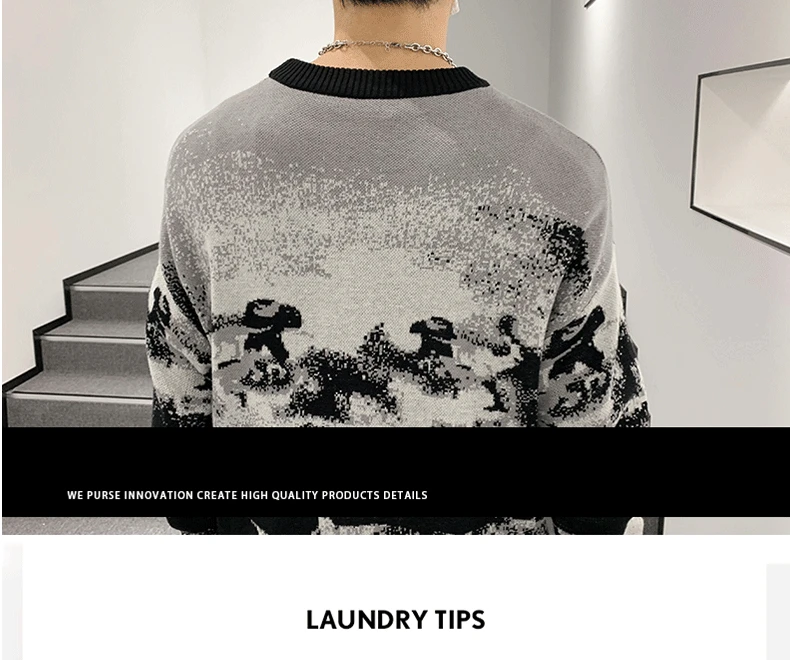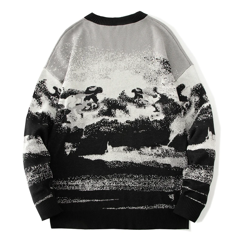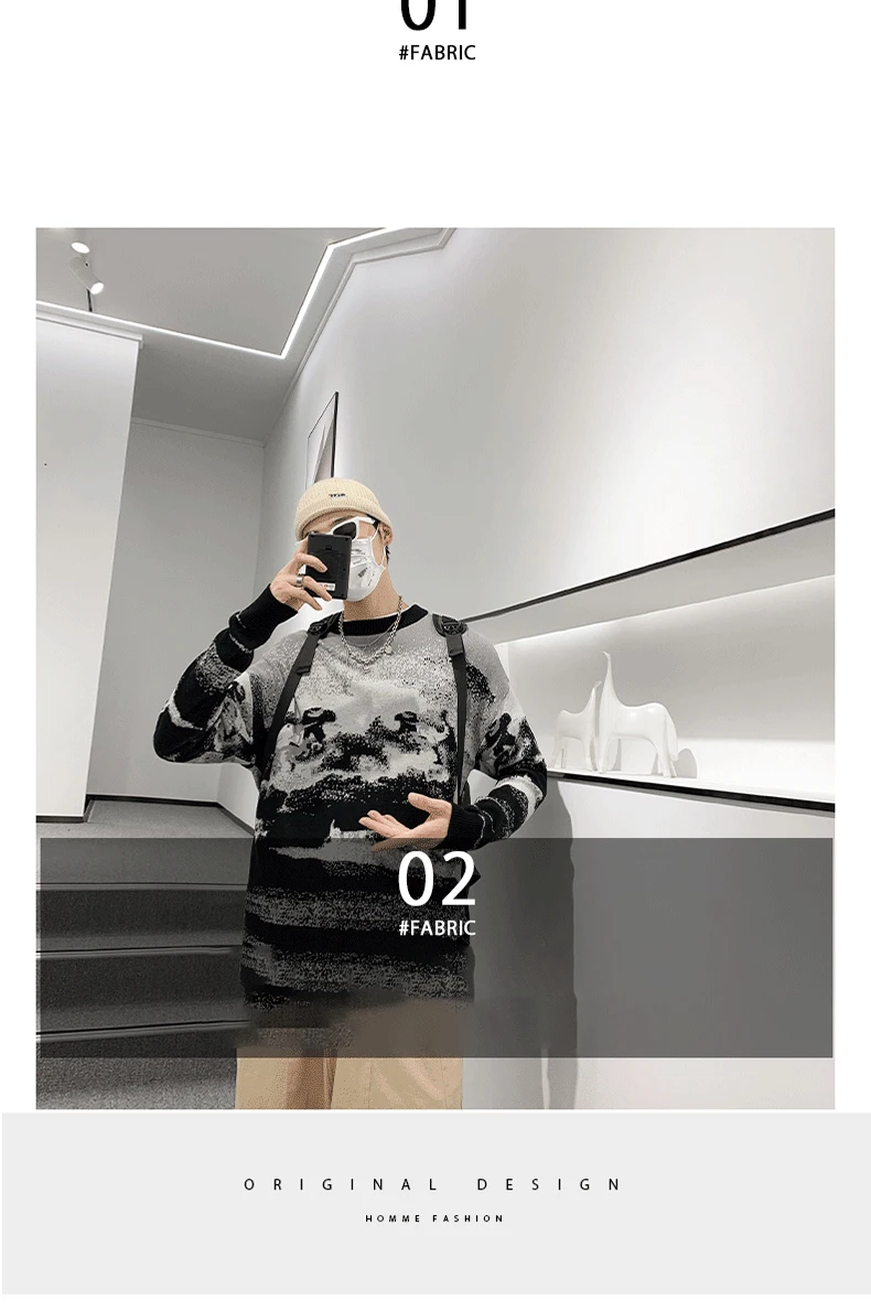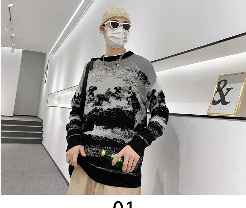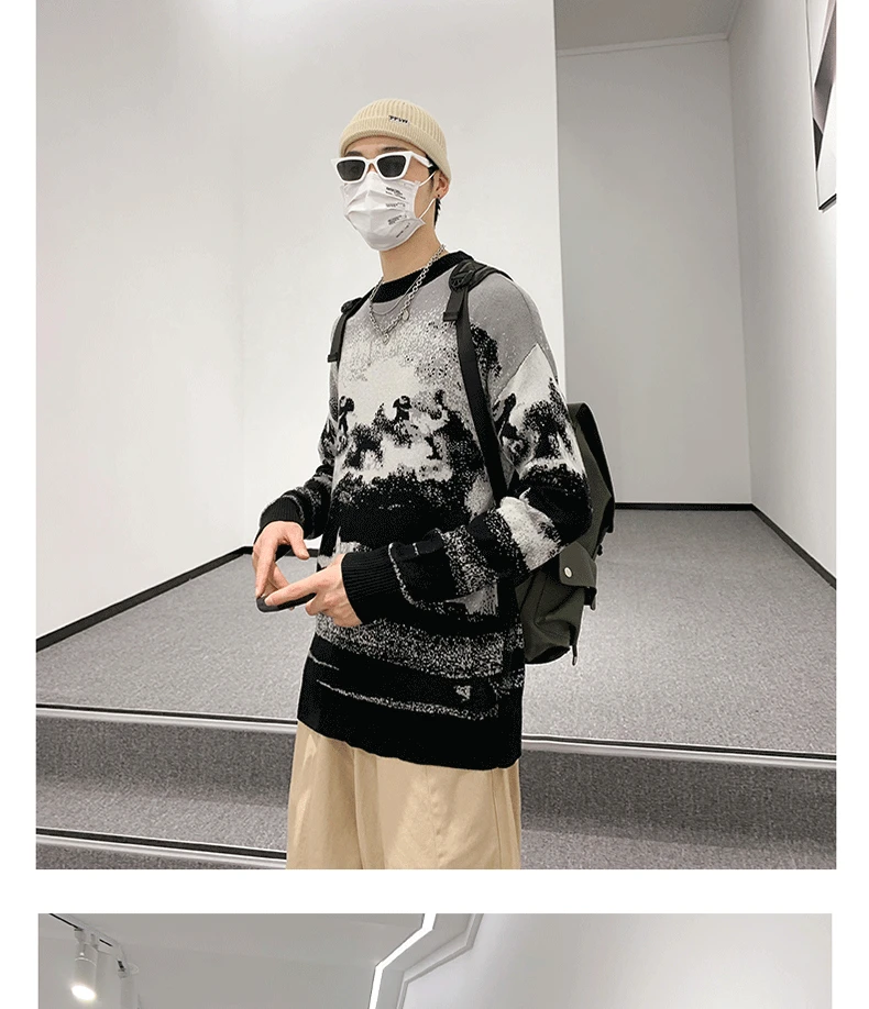Зимние винтажные свитера с пейзажем, Мужской пуловер, Мужская мода с круглым вырезом, китайский свитер с принтом, женская повседневная одежда в стиле Харадзюку