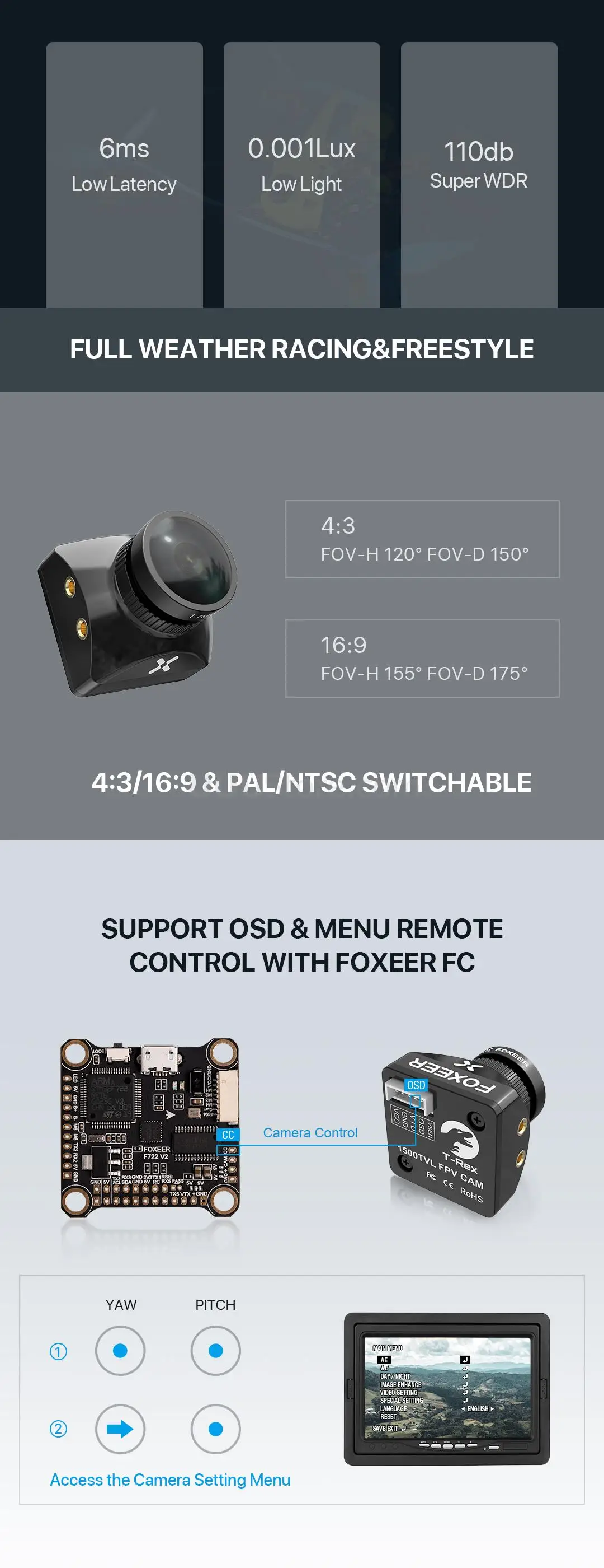 Foxeer T-Rex Mini 1500TVL 6 мс с низкой задержкой CMOS 2MP 4:316:9 ...