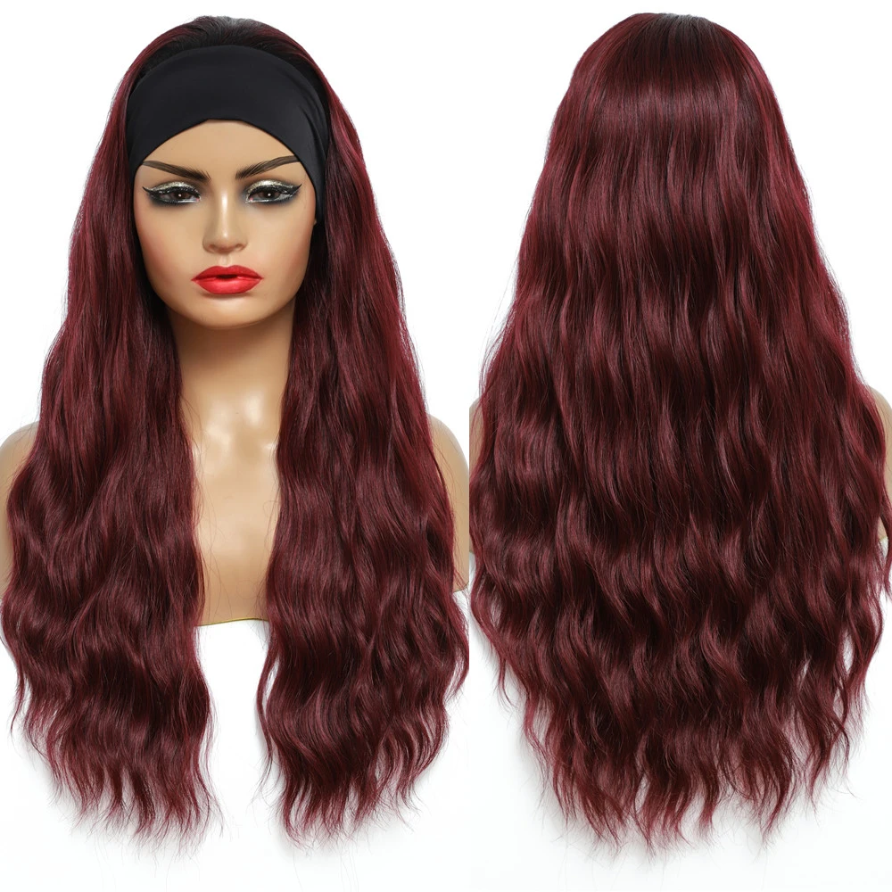 Головная повязка красный парик длинные натуральные волнистые синтетические головные парики для черных женщин безклеевые полностью автоматически изготовленные термостойкие женские