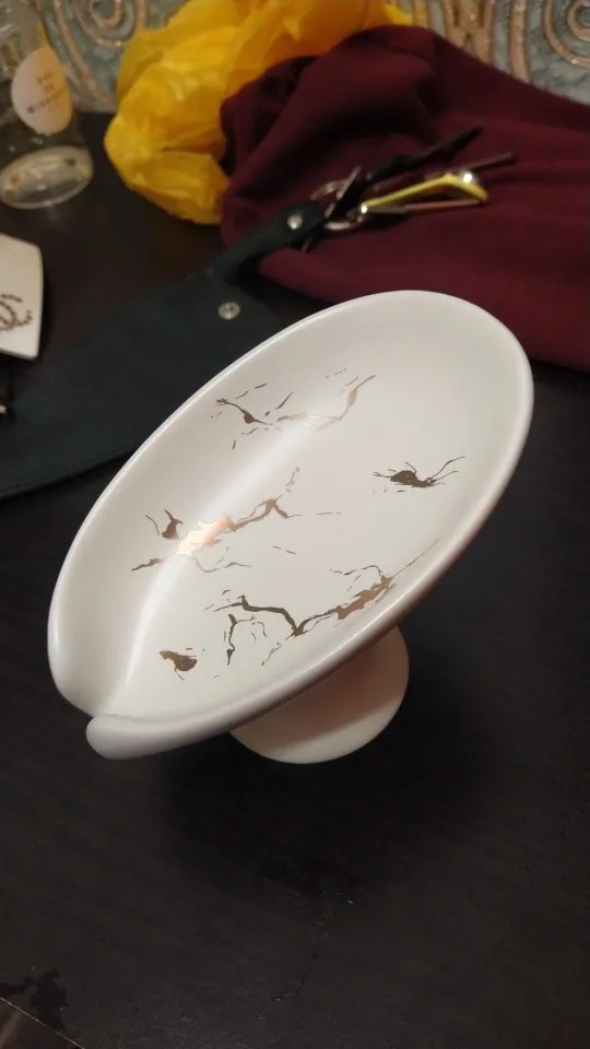 Мыльница для мыла, дренаж для мыла, держатель для мыла для ванной, душа, тарелка для хранения губки, Товары для ванной комнаты, в форме листа из керамики