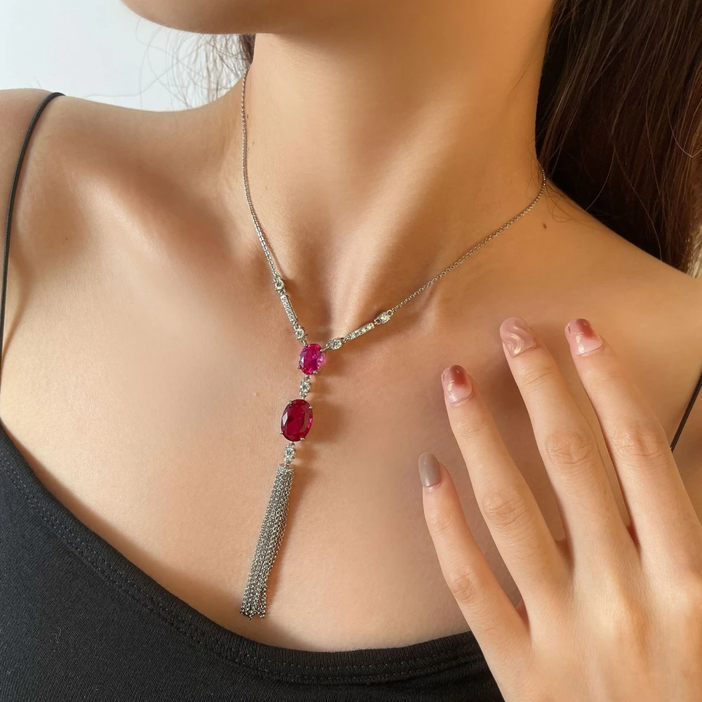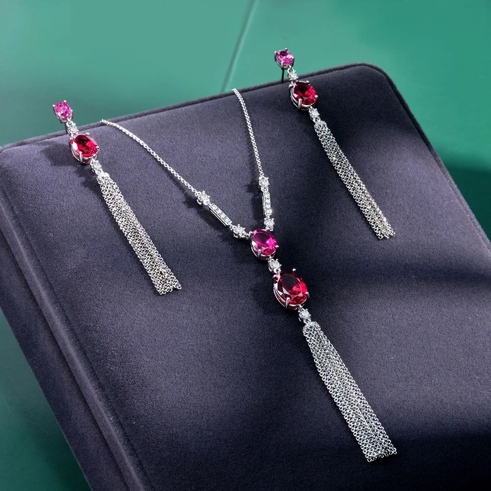 Wong Rain, Стерлинговое Серебро 925 пробы, овальная огранка, рубин, создан, моиссанит, драгоценный камень, элегантные серьги с кисточкамикулоножерелье, ювелирный набор