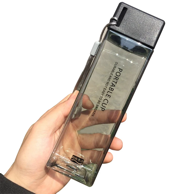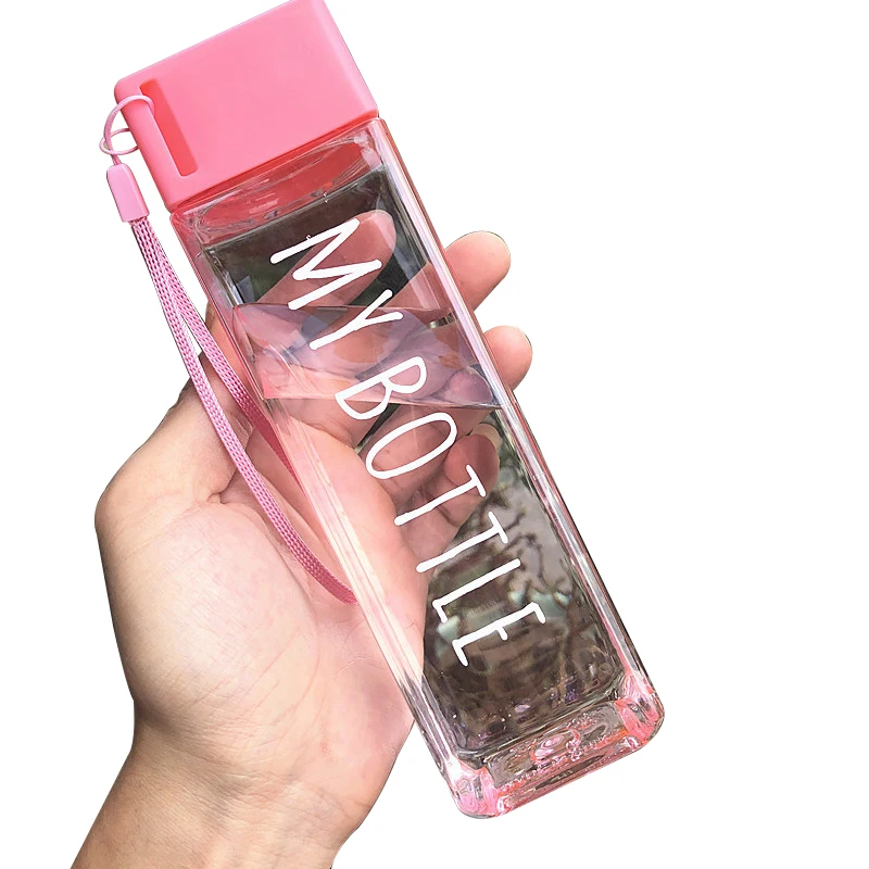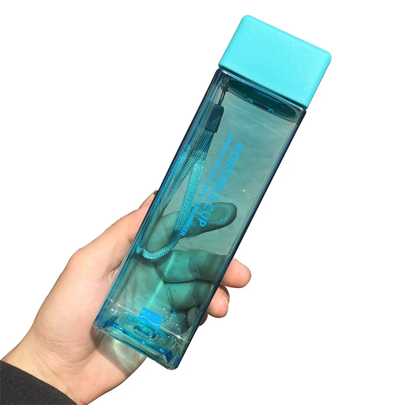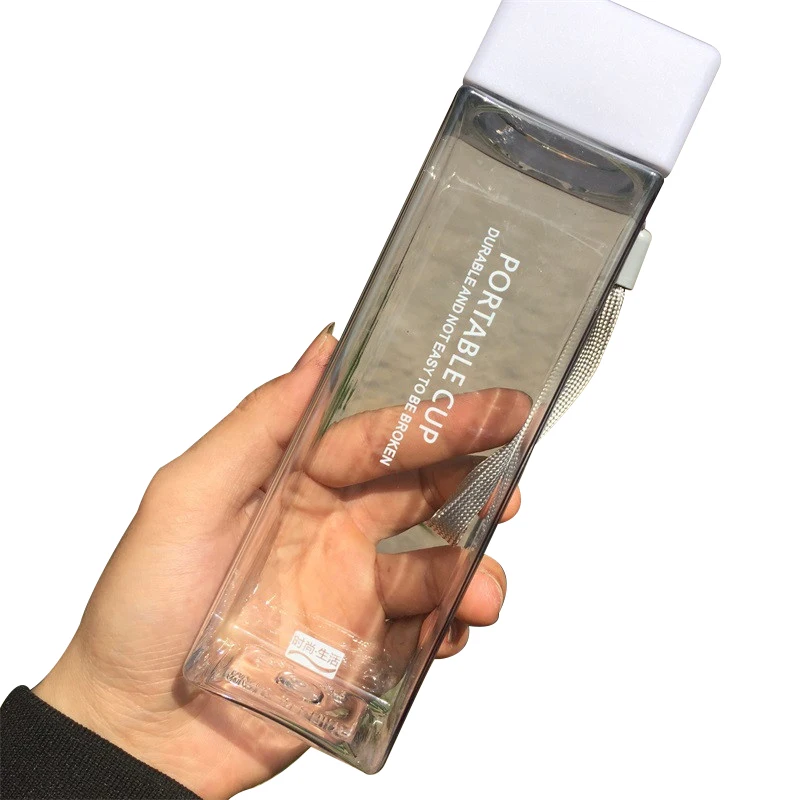 Прозрачная пластиковая бутылка для воды, квадратная зернистая чашка для холодной воды с водной веревкой, уличная спортивная чашка, бесплатная доставка, 500 мл