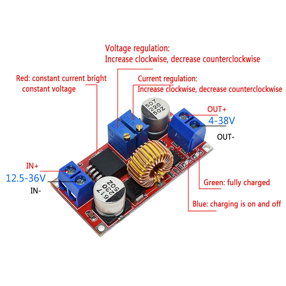 Плата зарядная понижающая для литиевых аккумуляторов XL4015 E1, модуль-преобразователь напряжения со светодиодами, 5 А постоянного тока, CC, CV