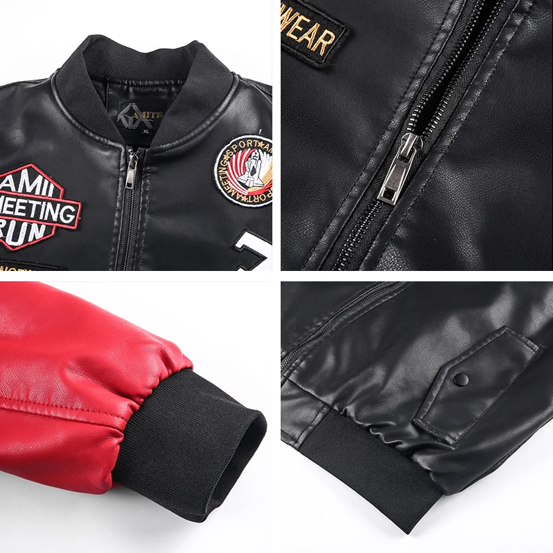 Мужская ветровка из искусственной кожи, мотоциклетная куртка из иск...