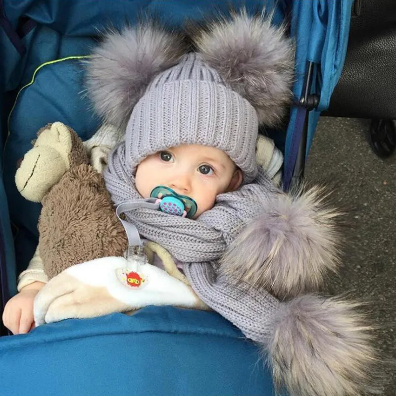 Детская шапка, шарф в комплекте, Детские теплые зимние шапки, шапки с помпонами для младенцев, шарфы, костюмы, детские шапки с помпоном из натурального меха, вязаные шапки, шапочки