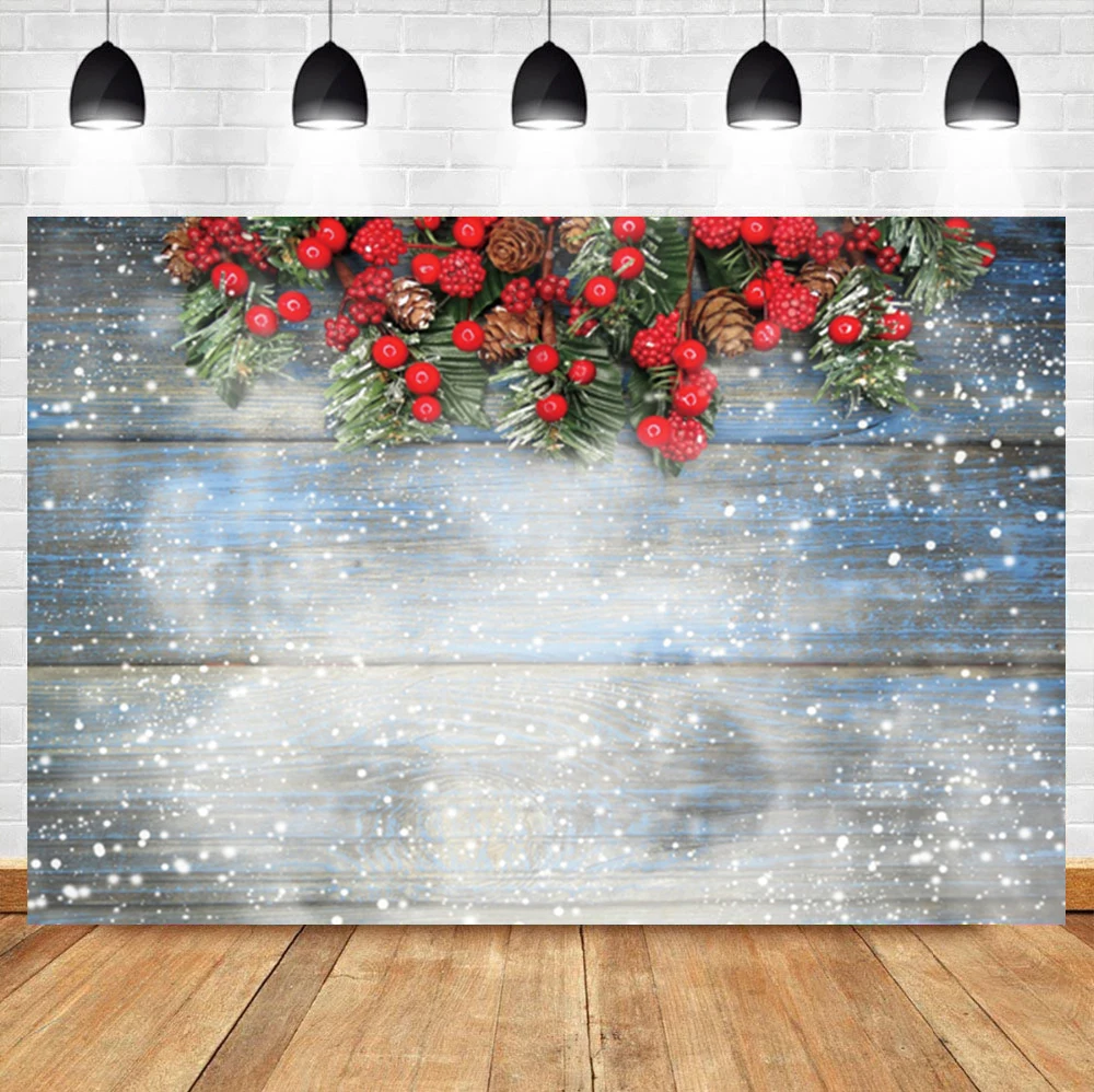 Laeacco зимняя Рождественская деревянная доска Снежинка Черри день рождения портретный фон фотографический фон для фотостудий
