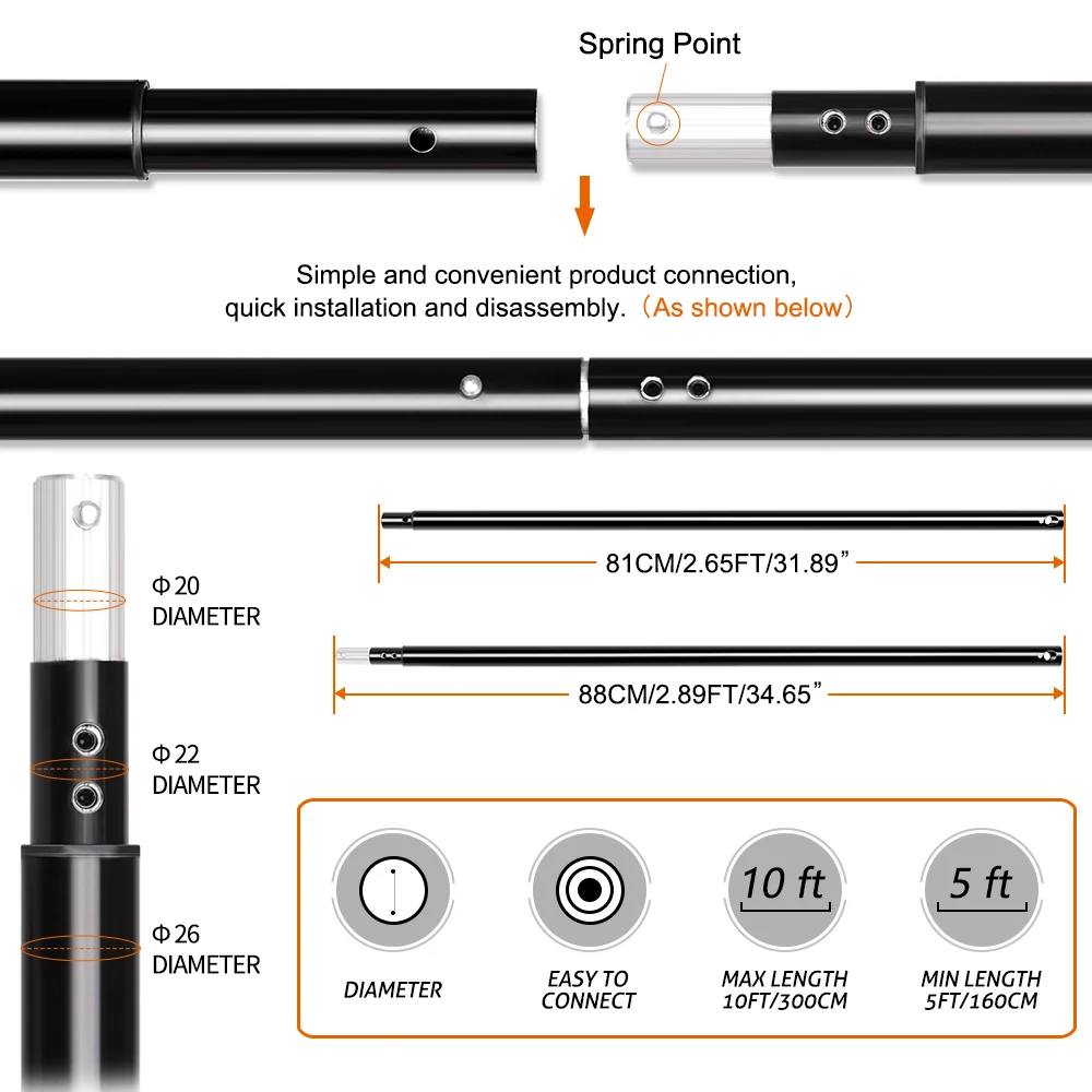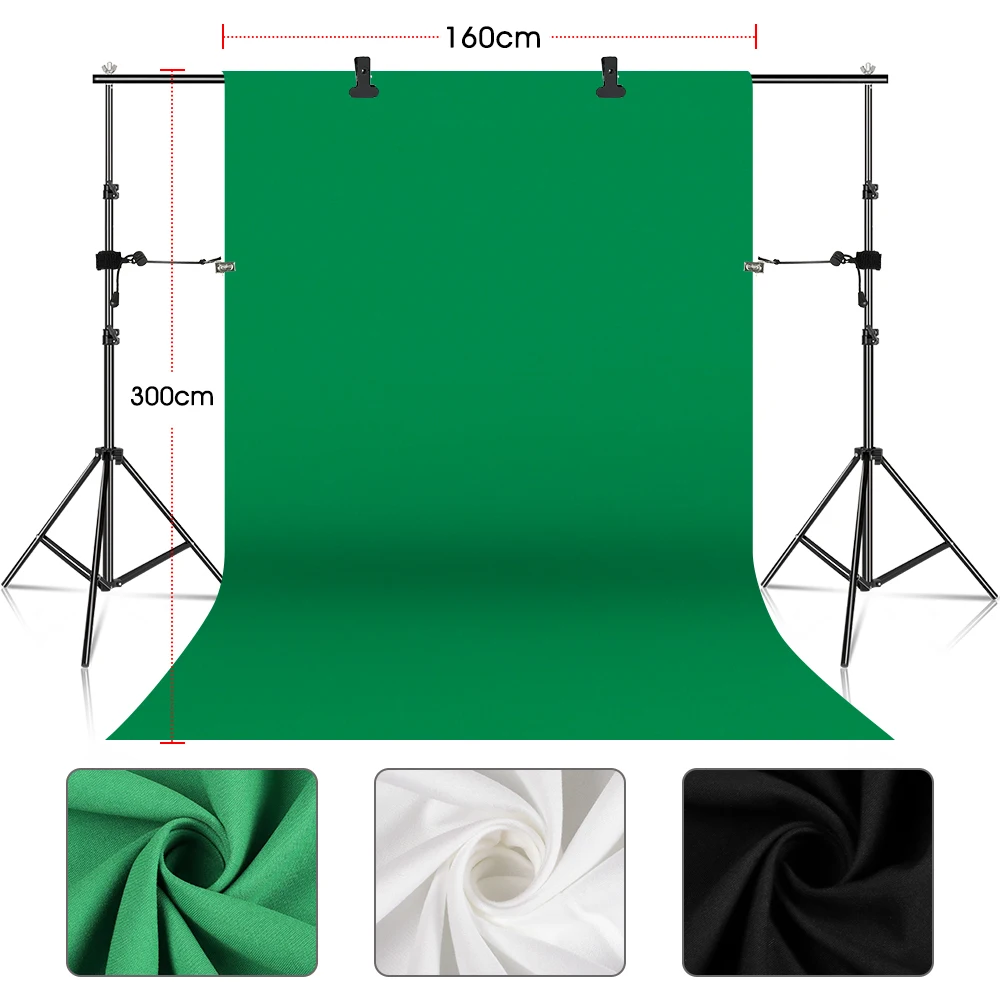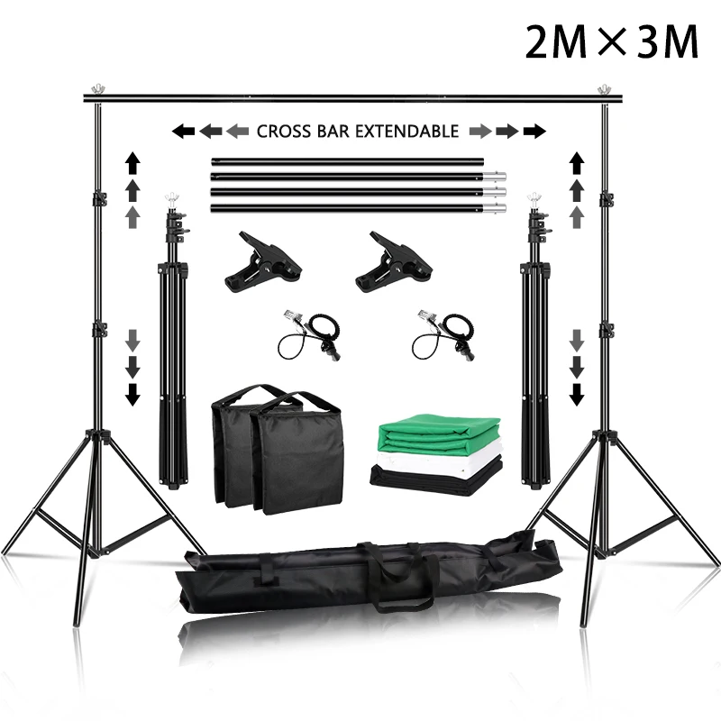 Этот фон может использоваться для профессиональной фотостудии.Держатель фона может поддерживать зеленый, синий, белый, серый, черный экран.2 x телескопическая перекладина: она может растягиваться в пределах 88-150 см, 2 перекладина может подключаться к 3 м перекладине.2 x опорный светильник: 2 м штатив-светильник, регулируемая высота (мин 77 см-максимум 200 см), стабильный и прочный.4 x зажима: 2 x зажим для рыбы, отрегулируйте заднюю ткань на лучшее положение. 2 x Крепкий зажим, фиксированные предметы предотвращают его выскальзывание.1 x чехол для переноски: вы можете поместить заднюю рамку в сумку для переноски, легко носить с собой.