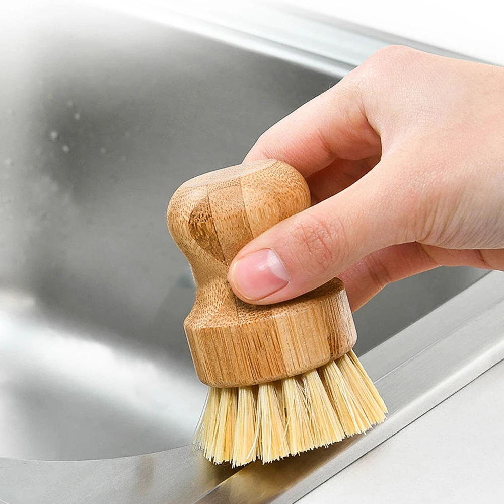 Круглая бамбуковая мини-щетка для кастрюль, натуральный скраб, для ...