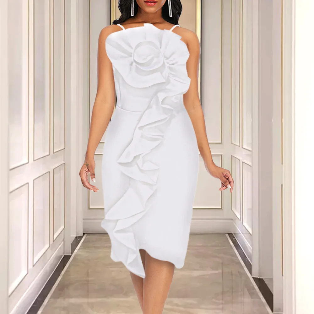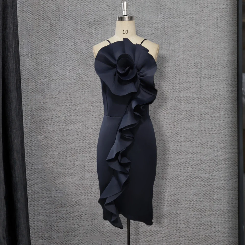 Модные женские элегантные коктейльные платья, облегающие сексуальные черные платья средней длины с воланом и высокой талией, приталенные вечерние праздничные платья больших размеров