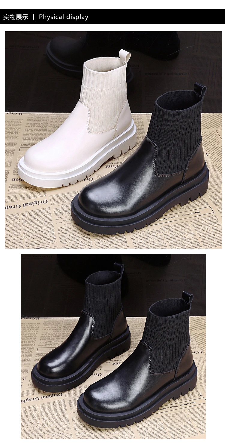 Ботильоны; Женская обувь без застежки; Модные вязаные эластичные женские короткие ботинки с круглым носком; Женские кожаные ботинки на платформе с квадратным каблуком