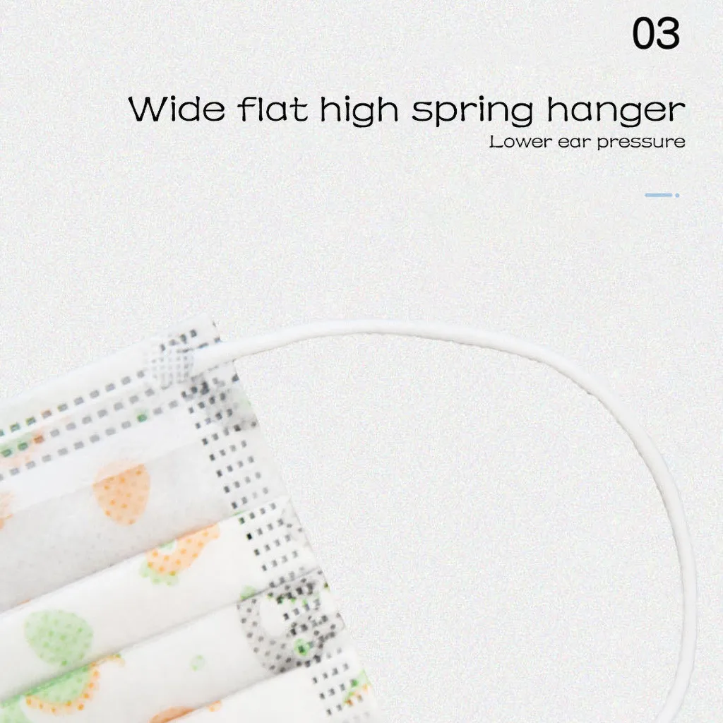 3-слойная Нетканая одноразовая маска изготовлена из 3-слойного нетканого материала Безопасен для здоровья и использования. Дышащий и милый материал Узоры, что делает его полезным и модным. Специальный 3-слойный нетканый Дизайн, обеспечивает некоторую защиту от пыли, выхлопных газов автомобиля, Эластичная петля для ушей, легко надевается и не давит на уши. Маникюрный салон или любые другие области, где может потребоваться защита