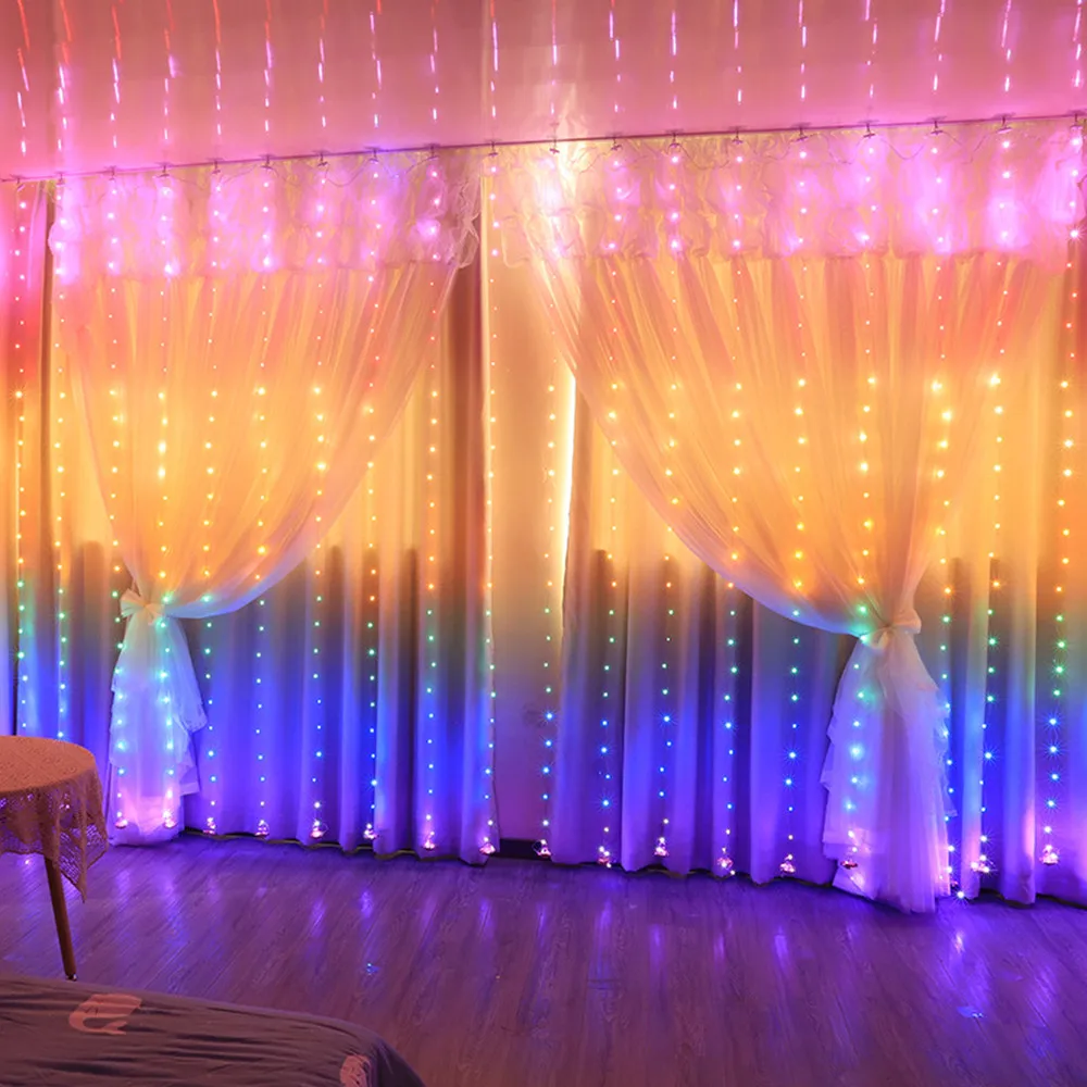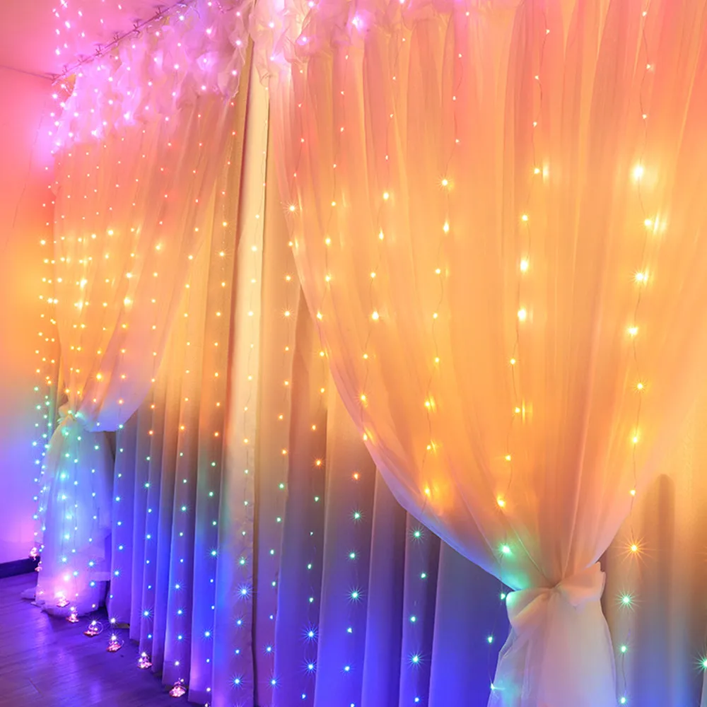 Разноцветная Радужная гирлянда, занавес, лампа, синий, розовый, 3 м, светодиодная гирлянда, сказочный светильник, новый год, Рождество, украшение для дома, спальни, окна