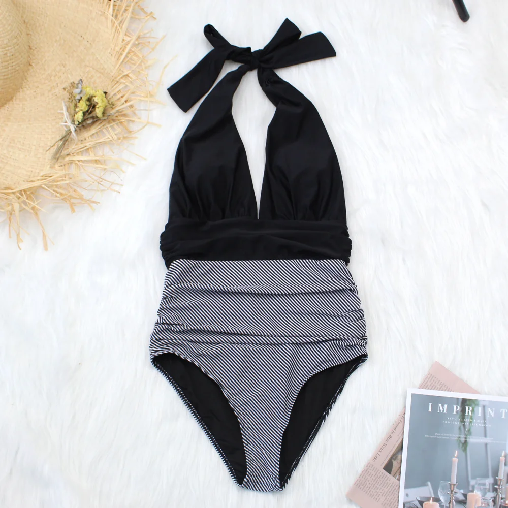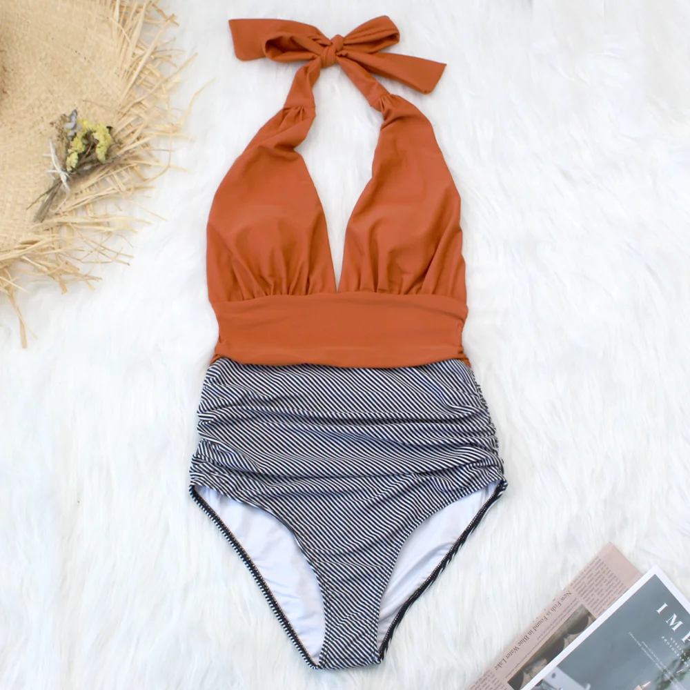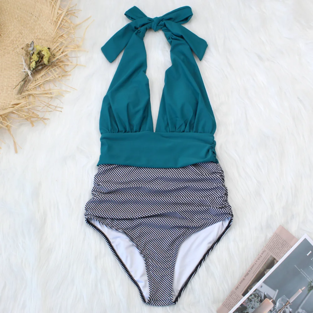 Цельный купальник, женские купальные костюмы с лямкой на шее, сексуальные женские винтажные купальные костюмы, монокини с открытой спиной