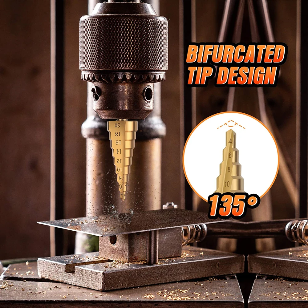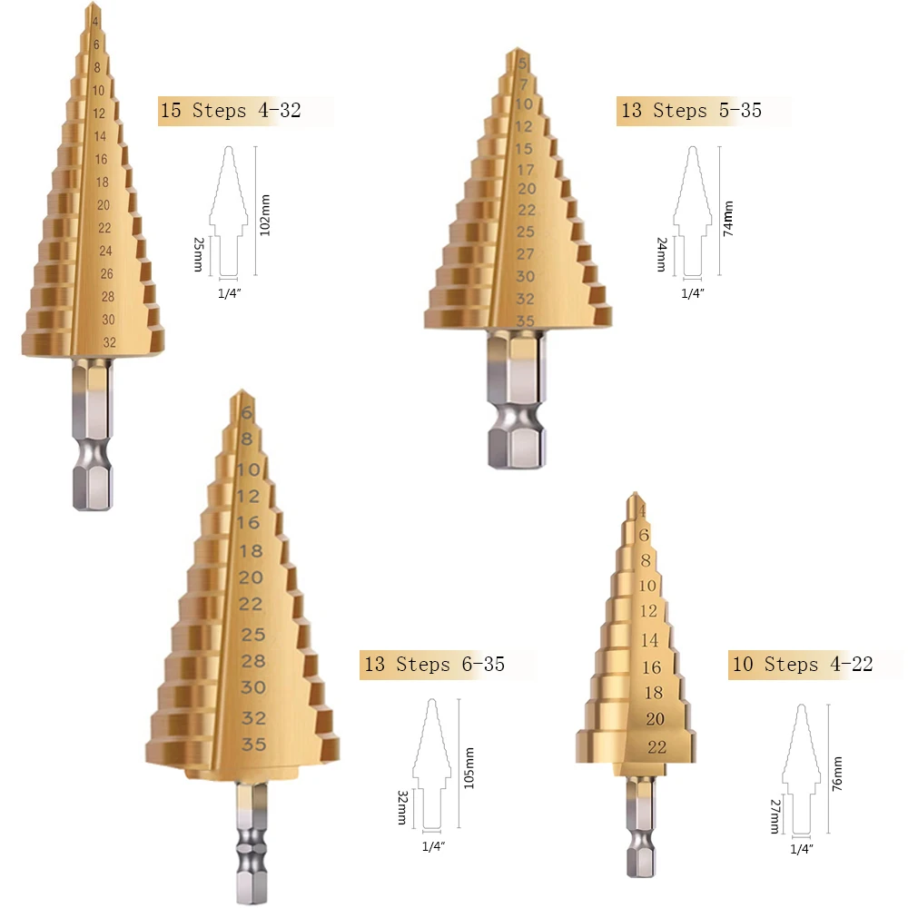 Быстрорежущее сверло с прямым пазом, ступенчатое сверло с титановым покрытием для дерева, металла, сверло с сердечником, высокоскоростные стальные конические сверла