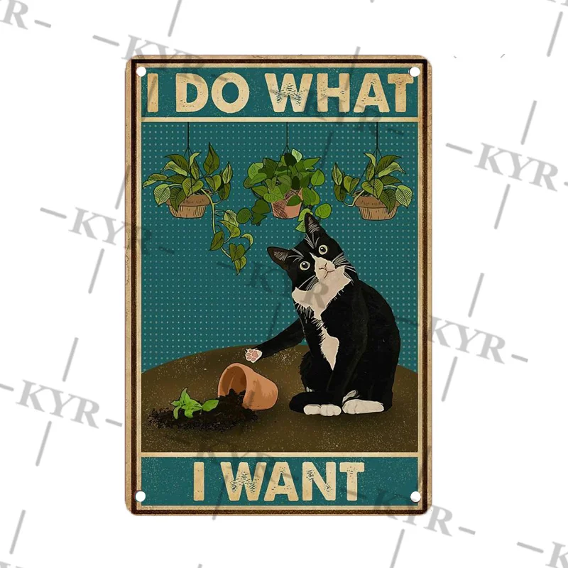 Классический винтажный чернильный цветок картина Белый Черный Кот домашний декор металлический жестяной Железный Знак подвесные настенные фрески для спальни гостиной табличка