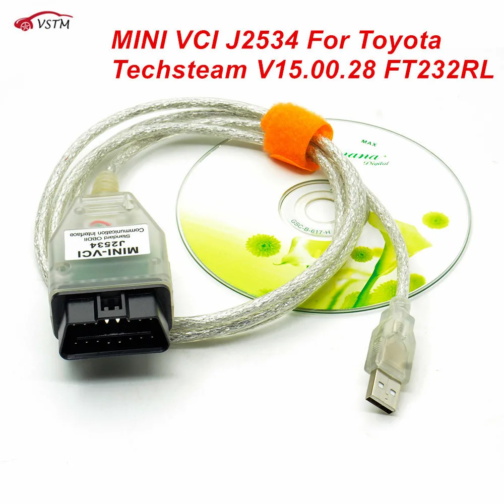 Новейший V15.00.028 мини VCI интерфейс для TOYOTA TIS Techstream J2534 OBD2 OBDII диагностический инструмент