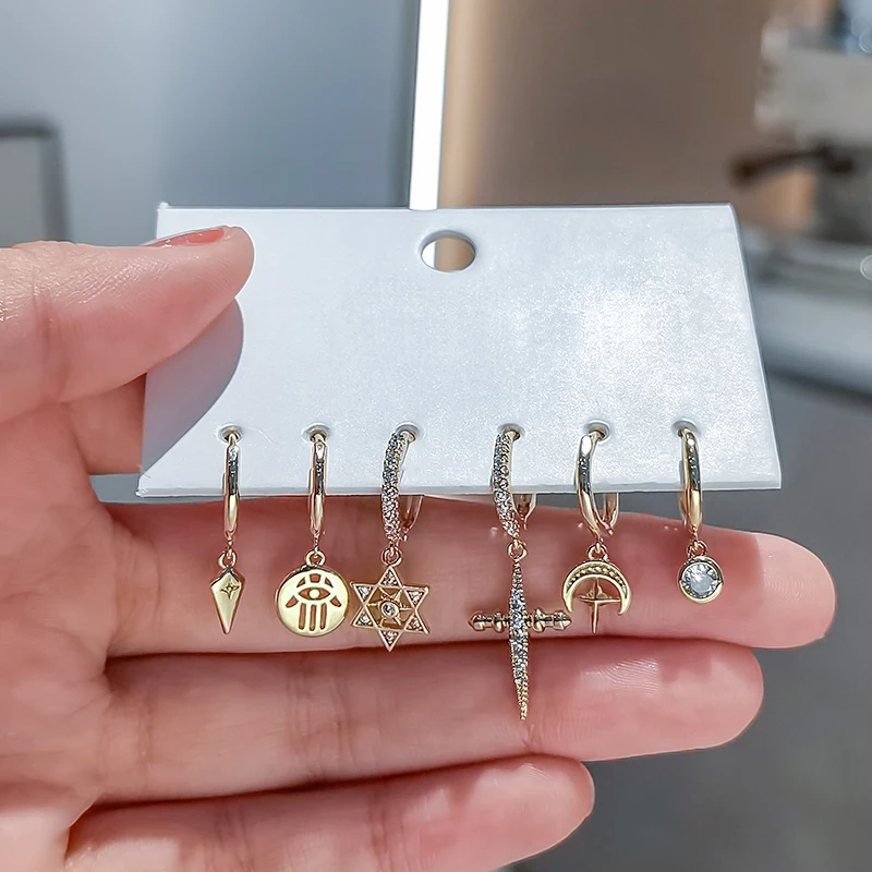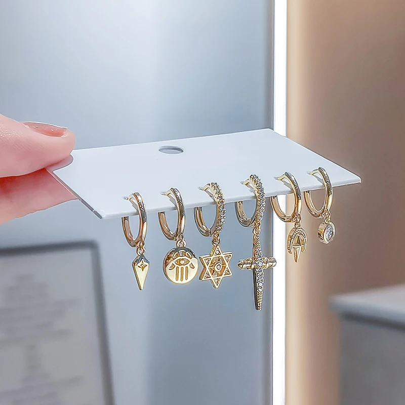 6 шт.компл. Серебристые вечерние ги с крестом и звездами