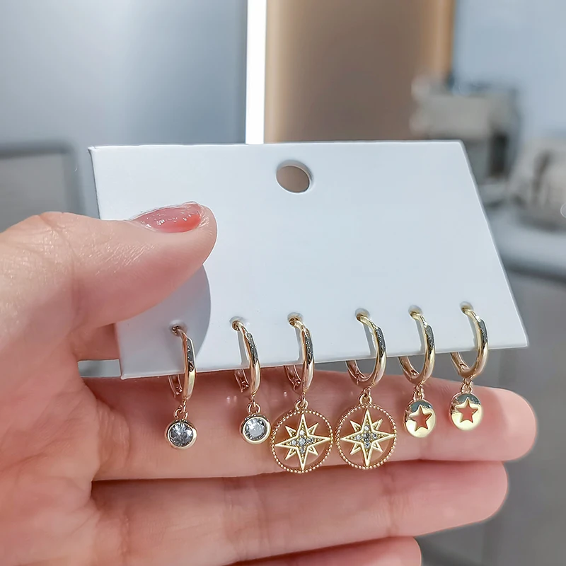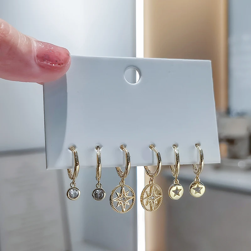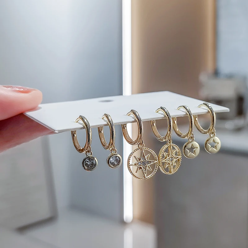 6 шт.компл. 925 Стерлинговое Серебро, звезда диска, фотозвезда, 3 пары, ретро, горячие модные серьги, ювелирные изделия вечерние Ринок