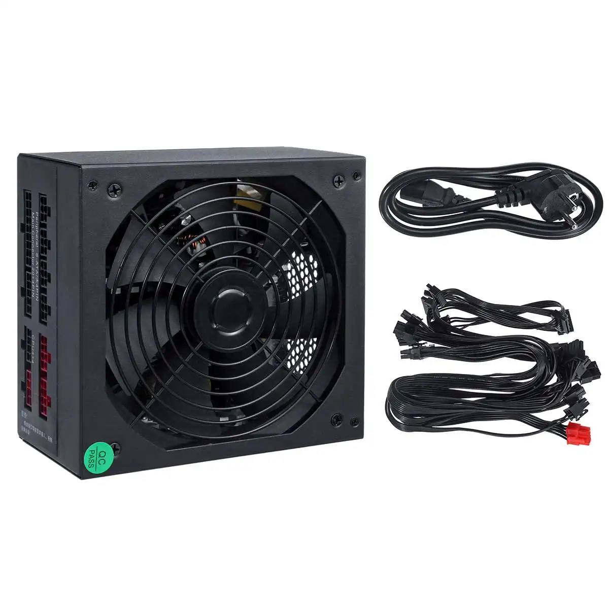 Блок питания для пк 750 Вт, 110-230 В, для компьютера, полный модуль, активный блок питания ATX 12 В PFC 24Pin 4 SATAATX 14 см, тихий светодиодный вентилятор для BTC