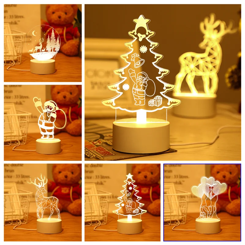 Рождественский Санта Клаус дерево Лось 3D акриловые светодиодные но...