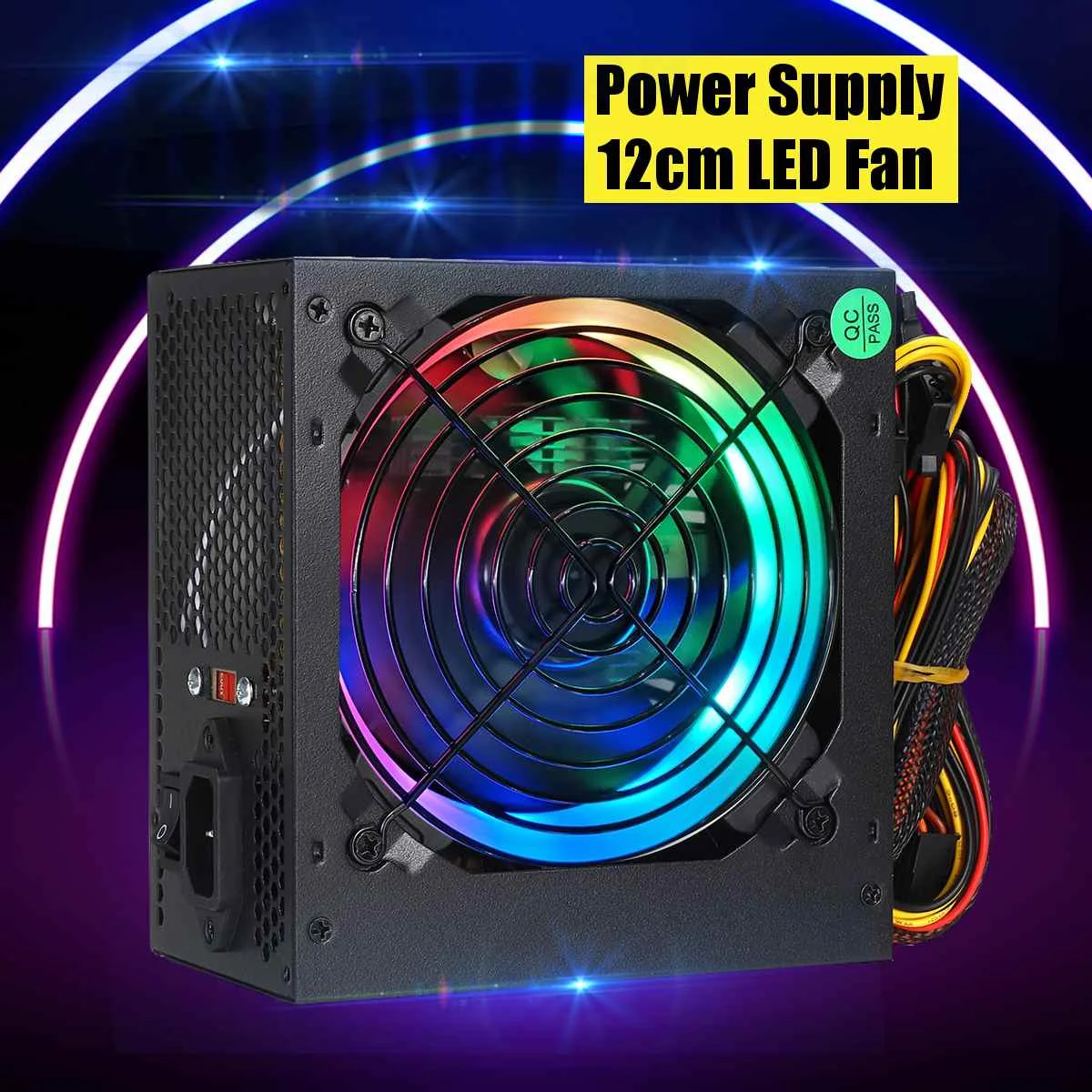 600 Вт источник питания 12 см многоцветный светодиодный вентилятор 24 Pin PCI SATA 12V компьютерный источник питания