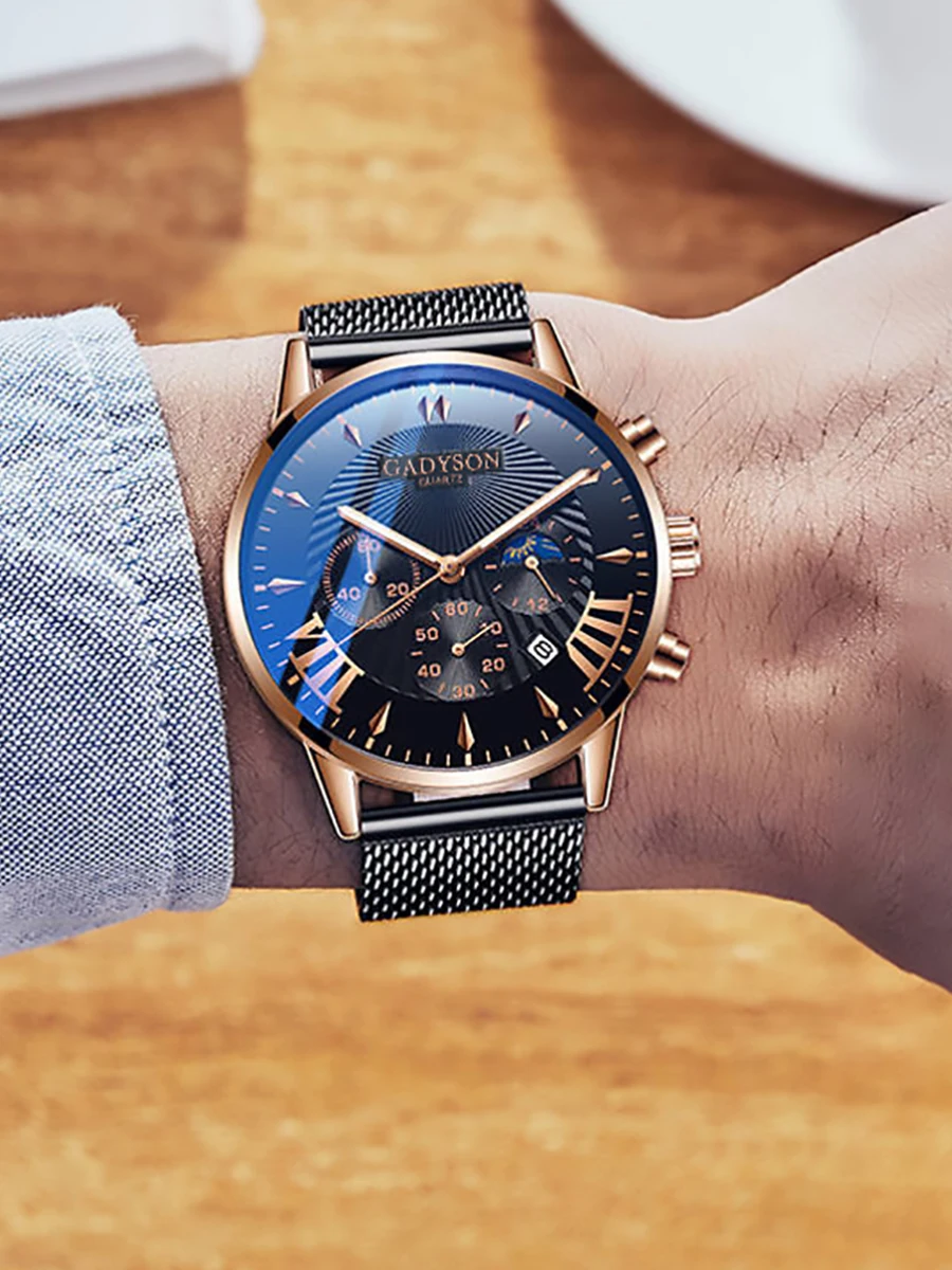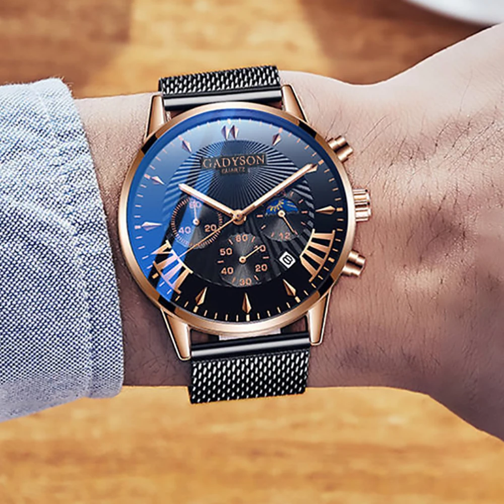 Часы наручные мужские кварцевые с сетчатым стальным браслетом, люксовые деловые, подарок для мужчин, с римским циферблатом