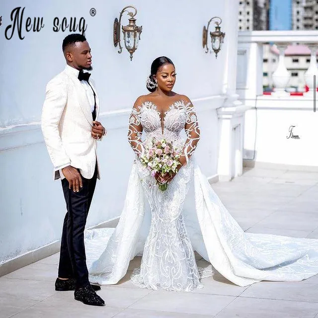 К требованиям заказчика; Сверкающие Свадебные платья 2021 женские вышитый бисером кружева для невесты платье с расширенным съемным подолом, размера плюс, сделанные африканская Роба de mariée
