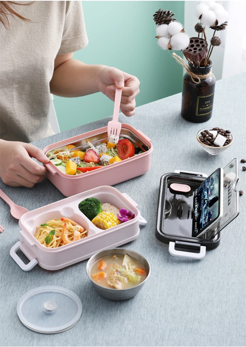 304 Нержавеющая сталь Коробки для обедов бенто ланч бокс для мальчиков школьного возраста офисных работников 2 слоя Microwae нагрева обеда контейнер Еда ящик для храненияUSD 1,74-4,11/шт.