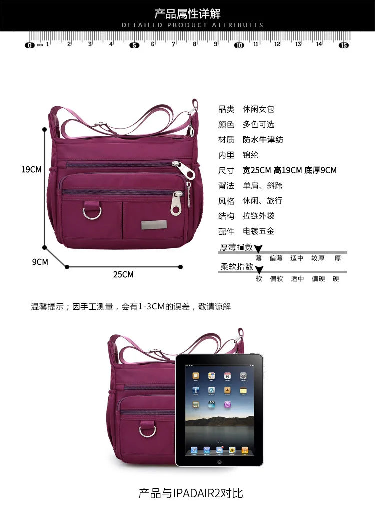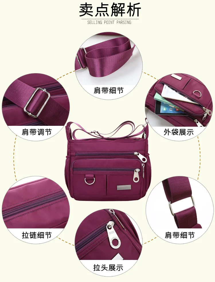 Сумка-мессенджер Женская, нейлоновая, многофункциональная, водонепроницаемая, 6012