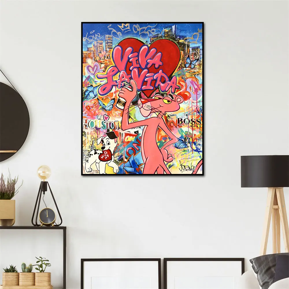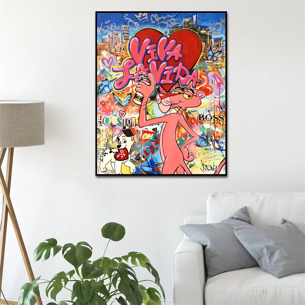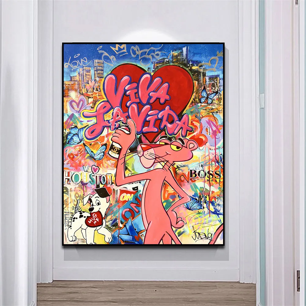Граффити постер поп-арт Розовая пантера спрей принты на холсте живопись Настенная картина для гостиной детской комнаты Декор для дома подарок