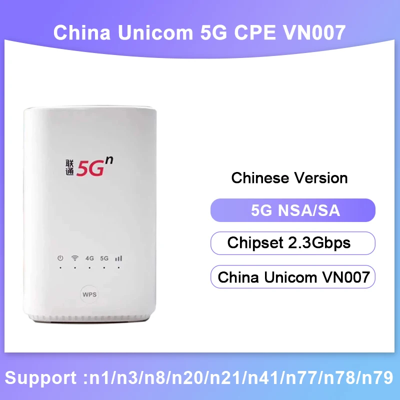 Разблокированный Китай Unicom 5G CPE VN007 2.3Gbps беспроводной CPE Pro с поддержкой sim-карты 5G NSA/SA NR n1/n3/n8/n20/n21/n41/n77/n78/n79