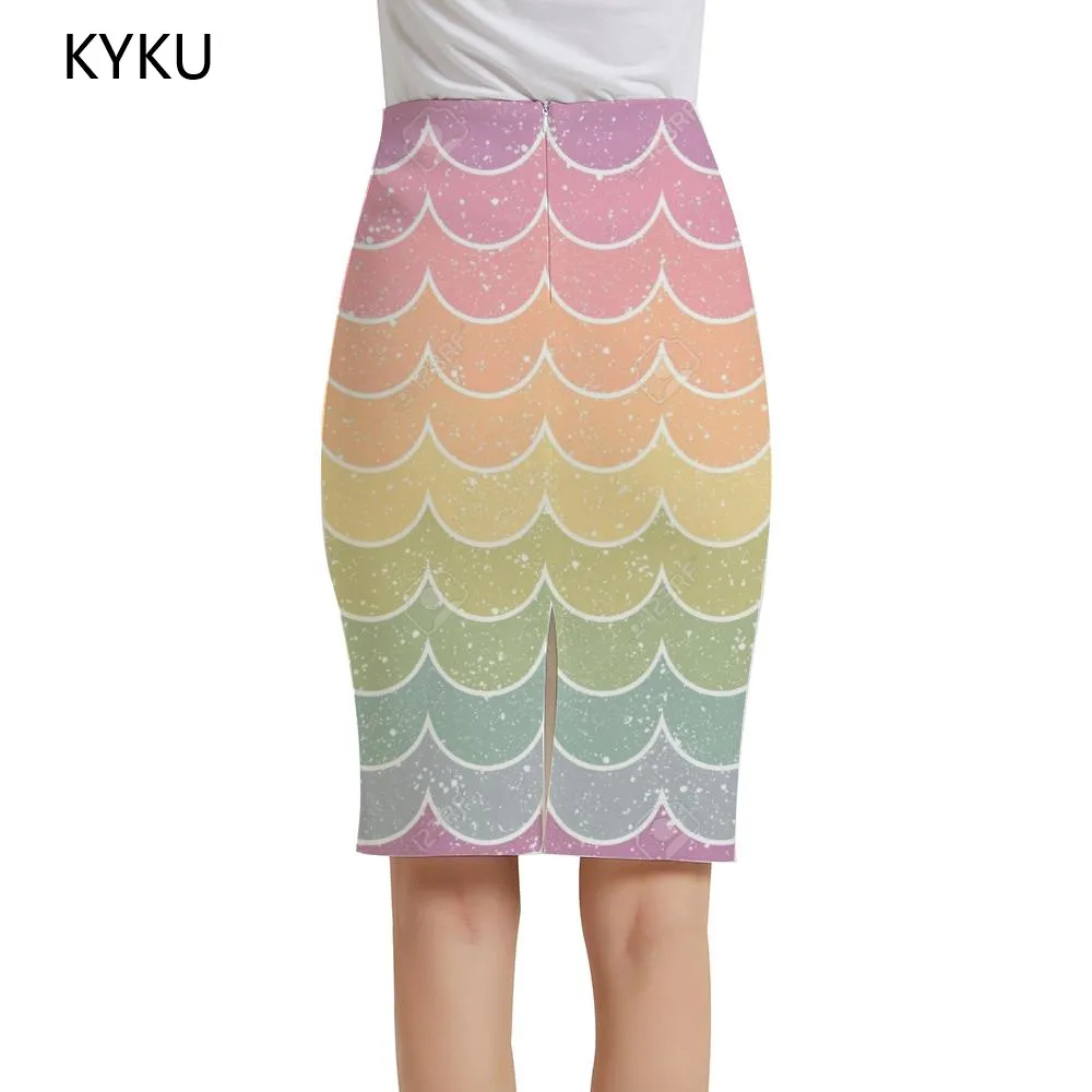 Женские юбки с ананасами KYKU, разноцветные офисные радужные юбки с...