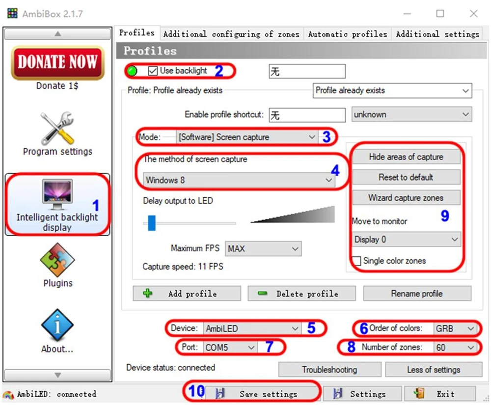 1. Поддерживает управление приложениями и совместимость с программным обеспечением AmbiBox;