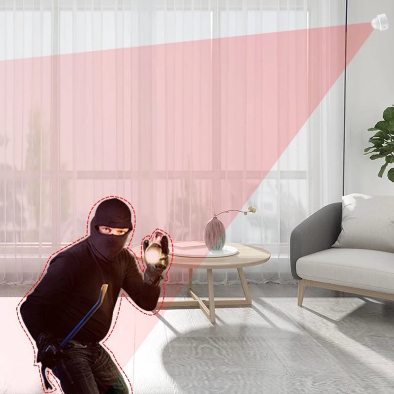 135 ° и эффективное расстояние в 10 метров в диаметре для обнаружения людей, так что вору негде спрятаться.