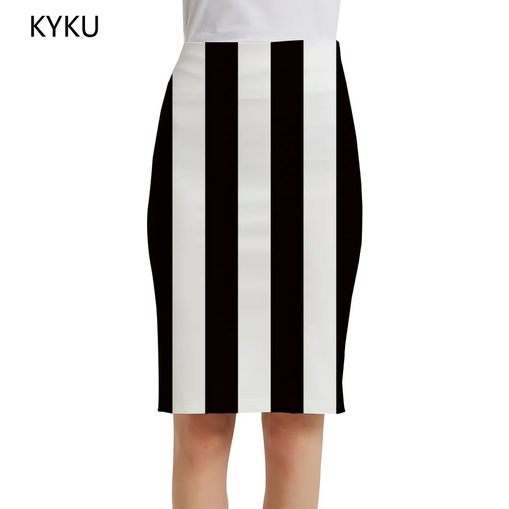 Женская юбка в полоску KYKU, черно-белая элегантная офисная юбка в стиле аниме