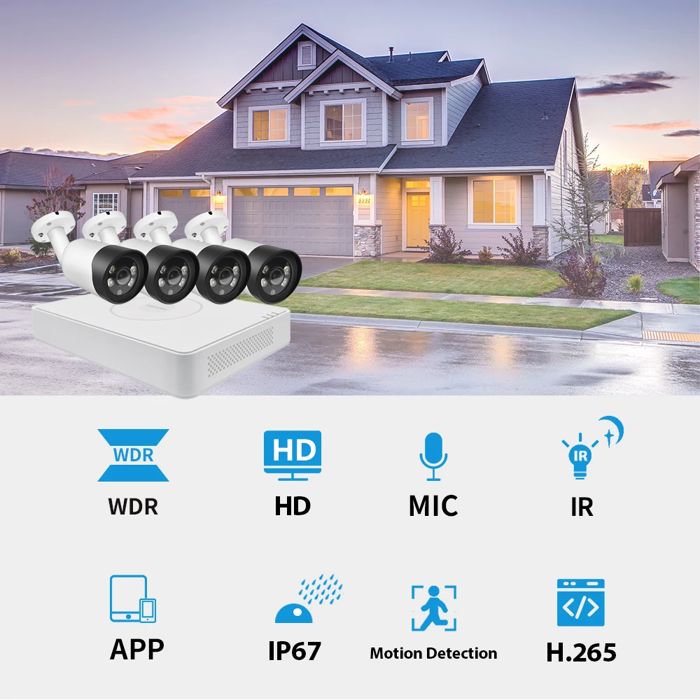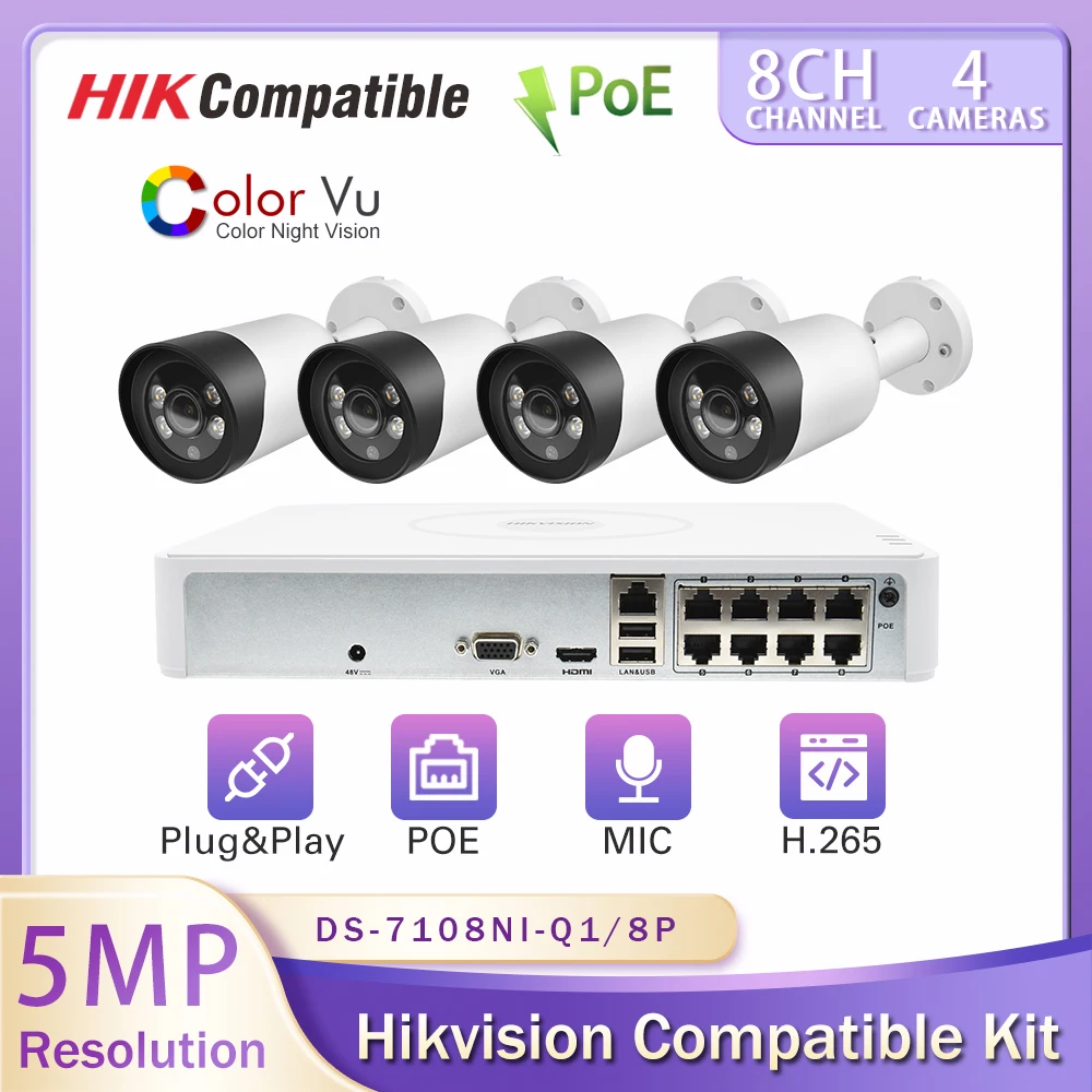 Совместимые с Hikvision комплекты DS-7108NI-Q18P 8CH 8POE NVR 5MP полноцветная IP цилиндрическая камера ночного видения Встроенный микрофон IP66 Plug Play