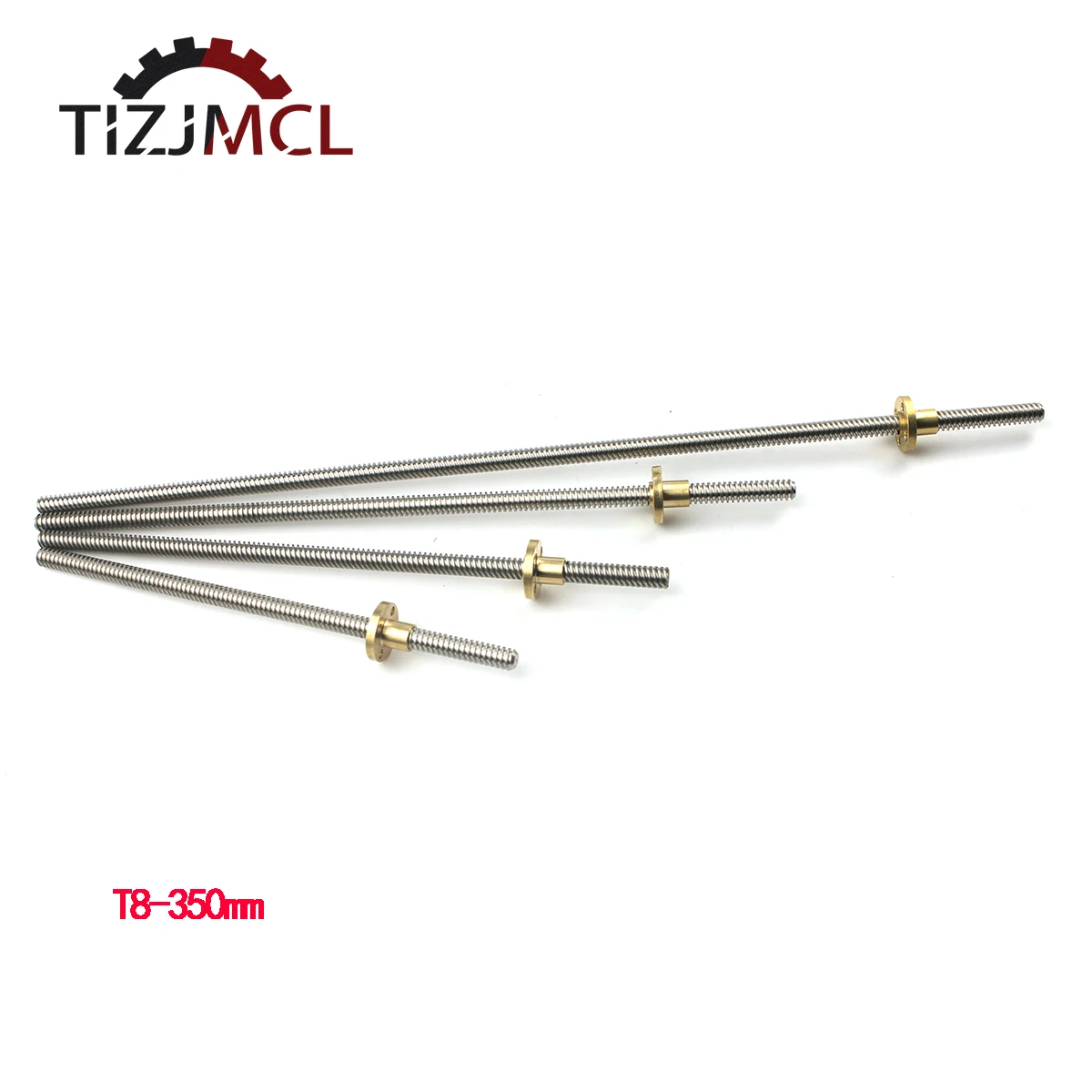 Ходовой винт T8 для 3D-принтера с ЧПУ, шаг 2 мм, трапециевидный стержень 2 мм с медной гайкой, длина 350 мм, латунная гайка