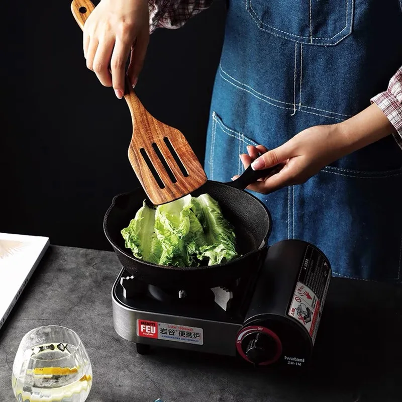 Кастрюля из тикового дерева с антипригарным покрытием, лопатка длин...