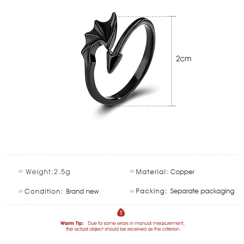 Модные мужские и женские открытые кольца с крыльями демонов, регули...