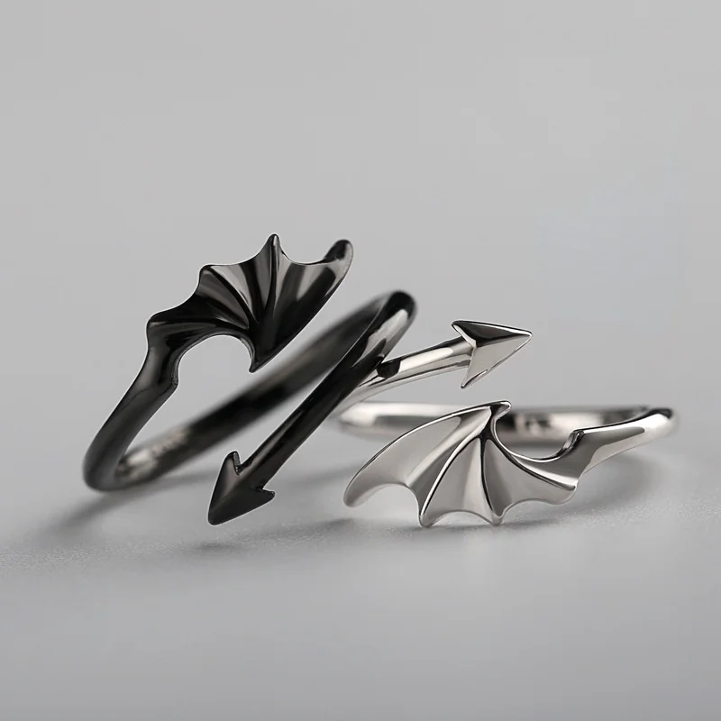 Кольцо зло в готическом стиле крылья для влюбленных черное белое сдвоенное крыло дьявола ангела стрела открытое парное Кольцо Панк ювелирные изделия на Хэллоуин оптовая продажа
