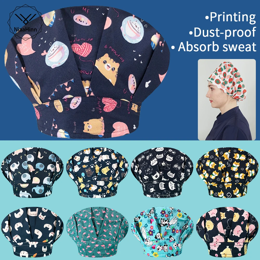 Хлопковая шапка-скрабы с принтом, шапка для оператора лаборатории, ...