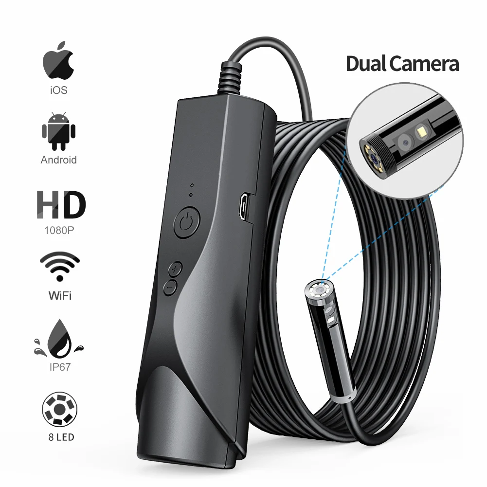 Камера-Эндоскоп, 4,9 мм8 мм, HD, 2 МП, Wi-Fi, с двумя объективами, беспроводная, с жестким проводом, канализационная камера с 6 светодиодными лампами для Android, IOS, IPhone