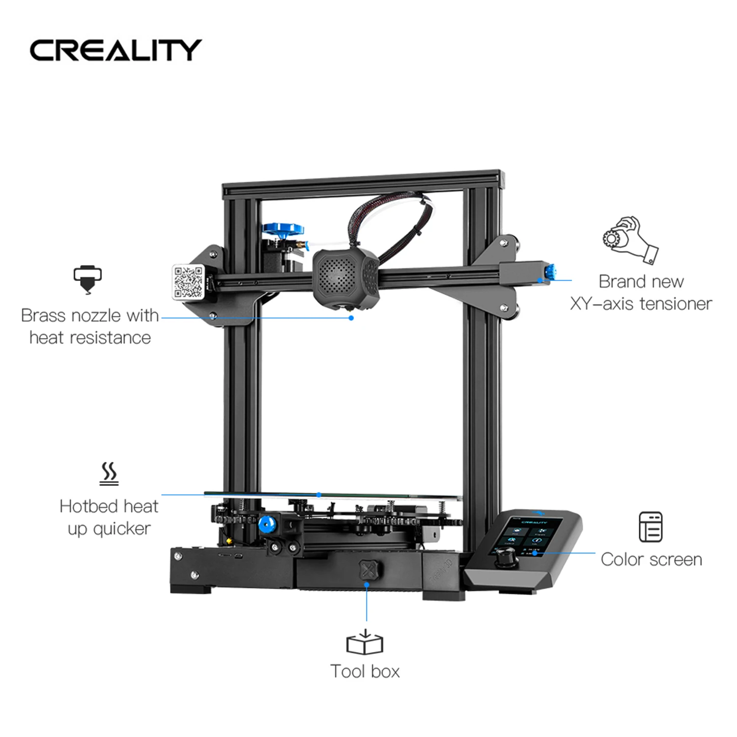 Y-Axis - 4040 Экструзия алюминия: ось Y была заменена на 4040 экструзии, так же, как Ender 3 Pro.Это обеспечивает большую стабильность оси Y по сравнению с первоначальным стандартом Creality Ender 3.