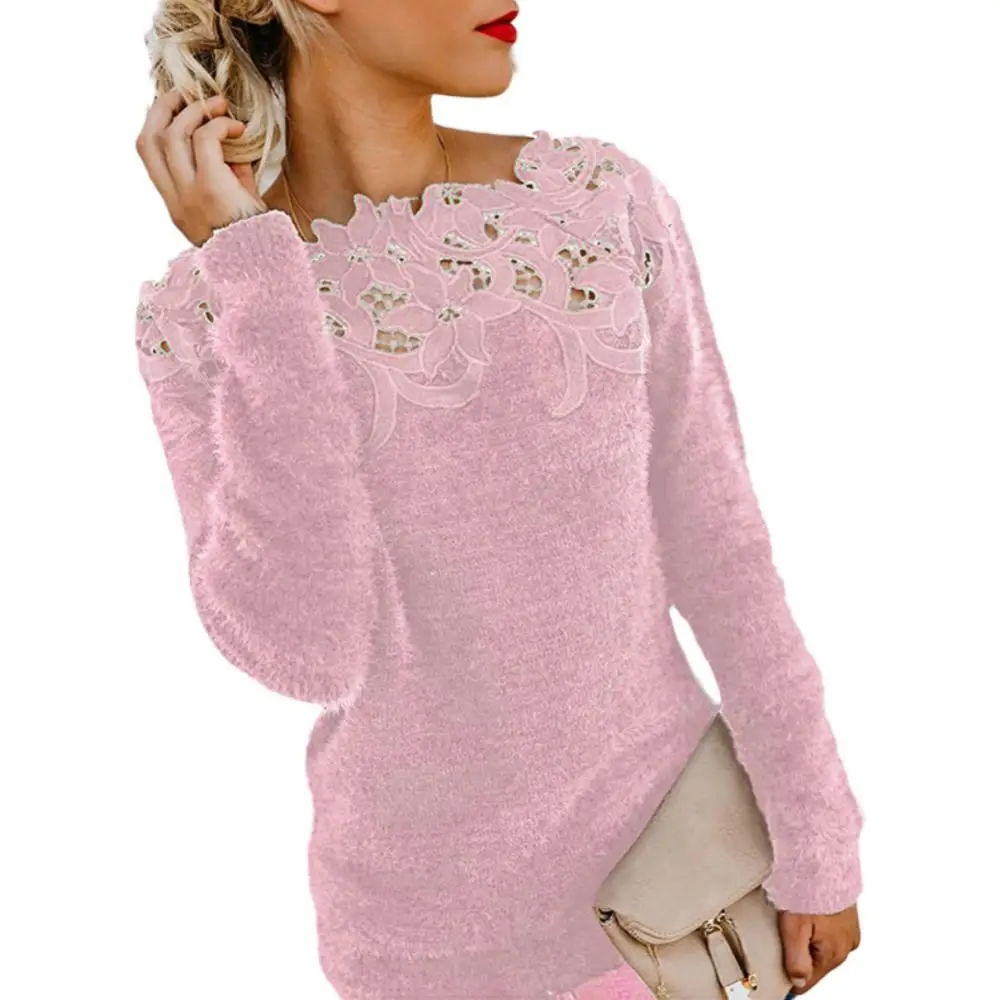 Lace Hollow Out Long Sleeves ClothesCasual Soft O-neck Jumper