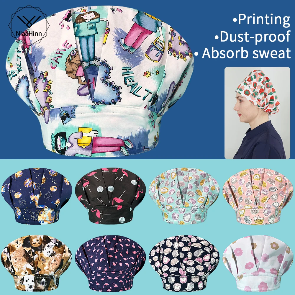 Хлопковая шапка-скрабы с принтом, шапка для оператора лаборатории, ...