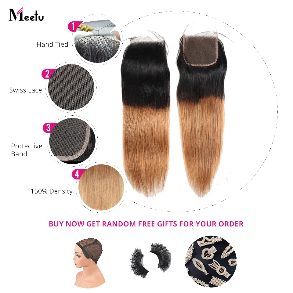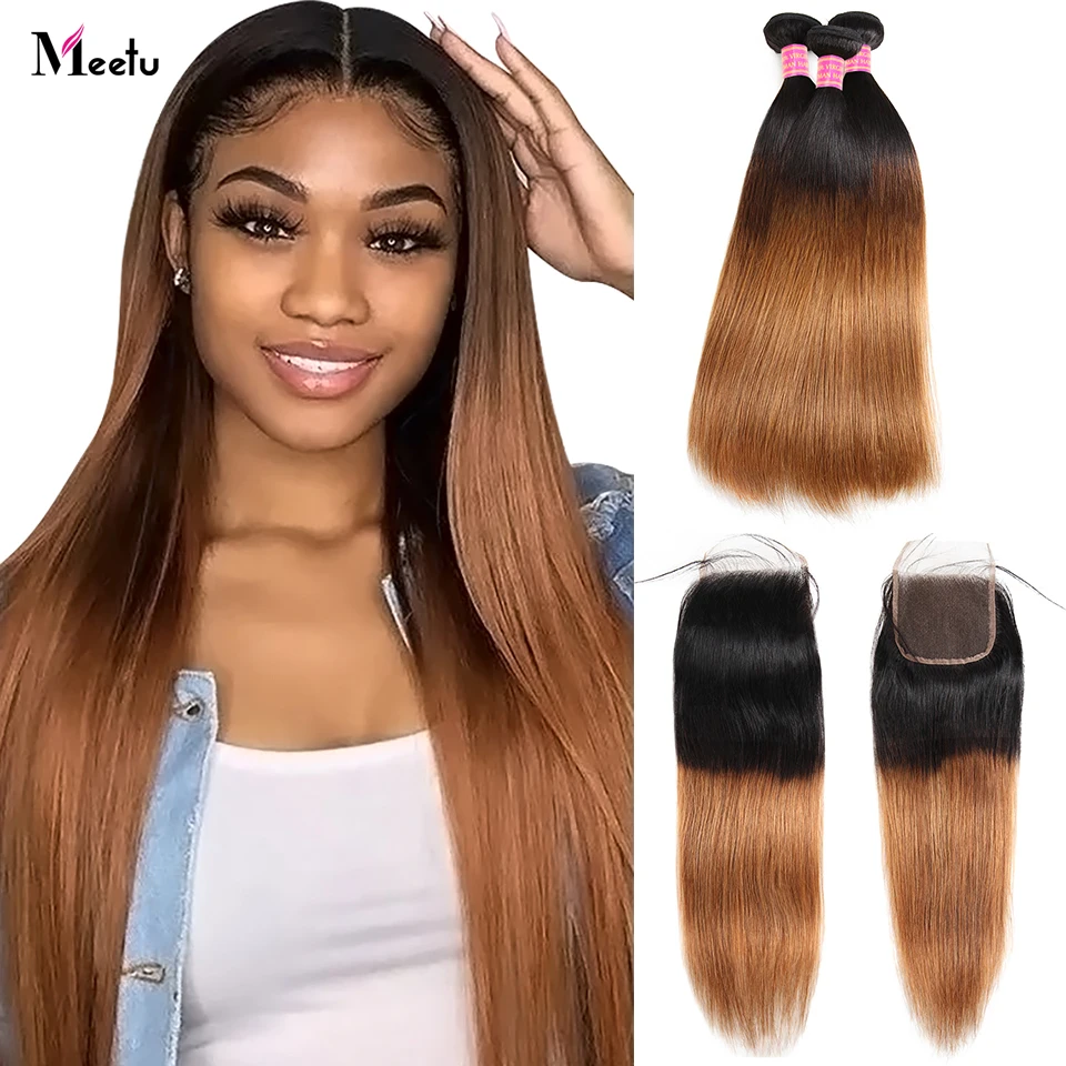Meetu 1B 30 пряди омбре с застежкой пряпряди с застежкой бразильские человеческие волосы Remy пряди с застежкой 4x4 дюйма