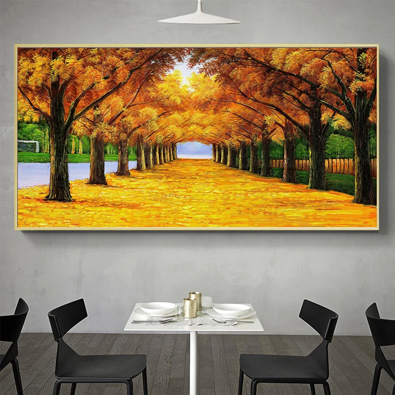 Осенний пейзаж, опущенные листья, картина, принты, деревья, улица, холст, печатные плакаты, Скандинавская Настенная картина для гостиной