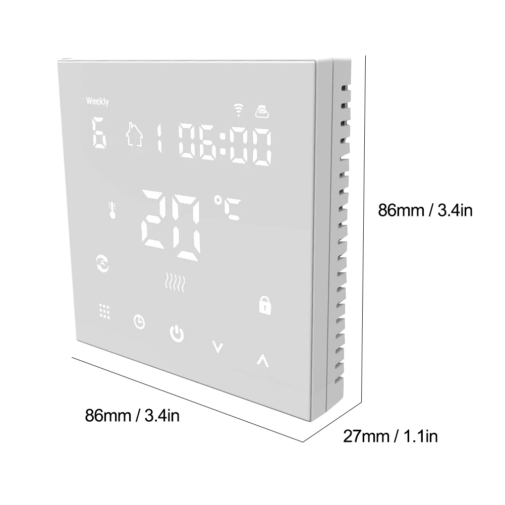 Этот специальный программируемый нагревательный Многофункциональный регулятор температуры в помещении с большим ЖК-экраном, использование технологии управления микрокомпьютером для сравнения температуры в помещении и заданной температуры, через реле управления отопительным оборудованием вкл/выкл, для достижения цели постоянной температуры в помещении и энергосбережения. Легкое касание кнопок, ЖК-дисплей в помещении, температура оборудования, неделя, часы, индикация переключателя времени и индикация рабочего состояния. Операция проста, и функция завершена. Управление Wi-Fi на мобильном телефоне. Особенности:Легкое прикосновение к кнопке для работы.Управляющий Электрический шаровой клапан, электрический клапан, электрический нагревательный клапан, Соленоидный клапан, электрическая нагревательная пленка, угольный кристалл и т. д.Использование высоконадежного микроконтроллера, сильная защита от помех.С помощью кнопки установить другой режим работыРелейный выход.С функцией калибровки температуры.С функцией защиты от замерзания.Используйте Клеммную проводку.Поддержка программирования 5 + 2 /6 + 1 / 7 дней в неделю, программирование шести периодов, управление настройкой температуры.Большой ЖК-дисплей.Запоминайте все настройки после внезапного отключения питания. Когда питание снова включено, вам не нужно сбрасывать его.Дополнительная двойная температура и функция двойного управления.Яркость подсветки можно регулировать через приложение.Поддержка Wi-Fi, дистанционное управление через приложение с помощью мобильного телефона. Один мобильный телефон может управлять одним устройством, а также несколькими устройствами. Характеристики:Цвет: черный, белый (по желанию)Тип: электрическое отопление 16 А, нагрев воды 3 А, нагрев воды и котла (опционально)Рабочее напряжение: AC90-240V, 50/60 ГцТочность контроля температуры: ± 0,5 ℃Установочный диапазон температур: 5 ℃ -35 ℃Предельный Диапазон температур: 5-99 ℃Мощность самопотребления: <0,3 ВтРазмер изделия: 86*86*27 мм/3,4*3,4 * дюймаВес изделия: 250 г/8,8 унцииПосылка: 100*100*50 мм/3,9*3,9 * 2.0inВес посылка: 300 г/10,6 унции Примечание:С внешним датчиком поставляется только тип электрического нагрева 16 А. Упаковочный лист:1 * регулятор температуры1 * Руководство пользователя2 винта