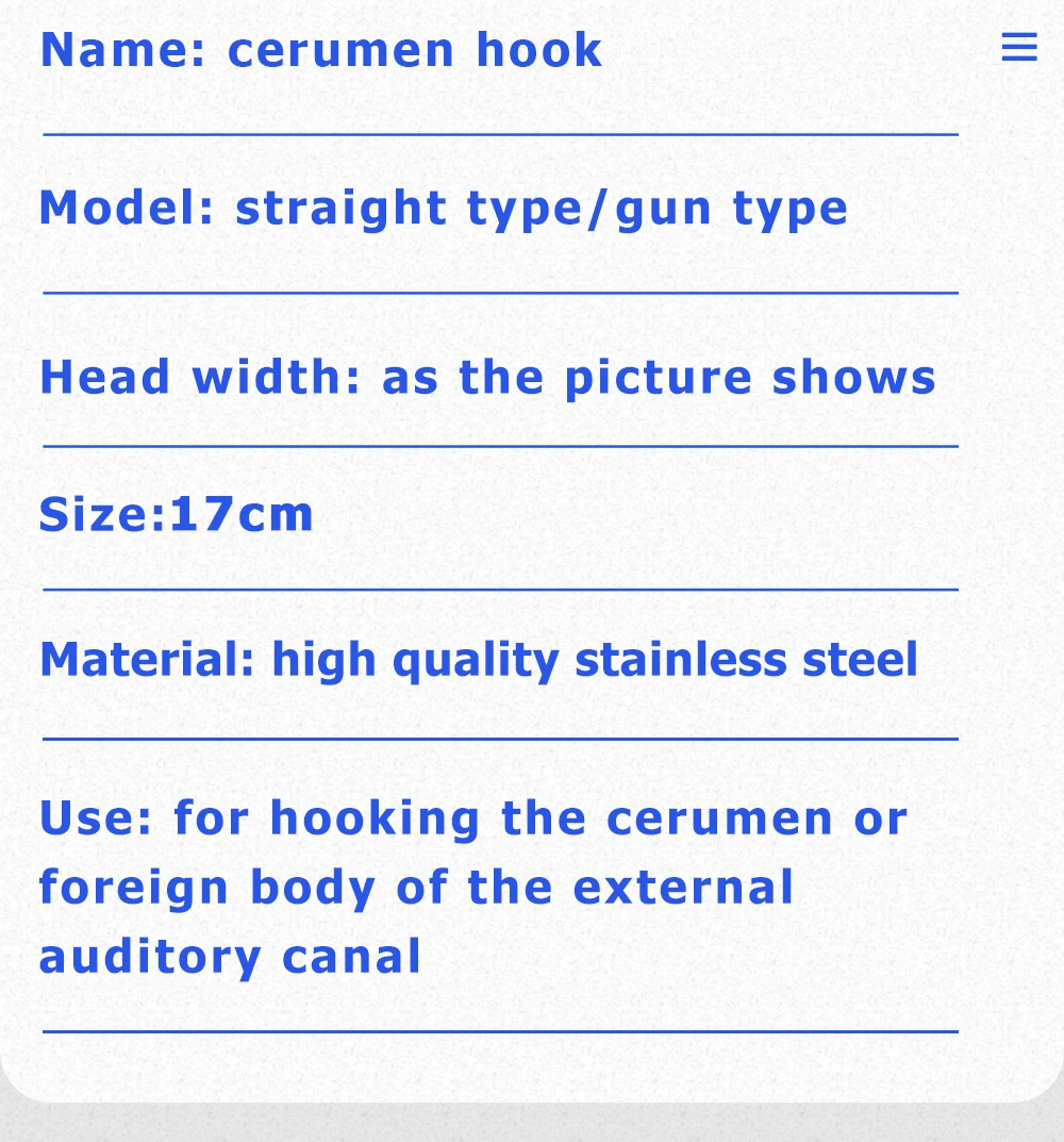 Крючок из нержавеющей стали Cerumen, крючок Cerumen, пистолет, инструмент для медицинского инструмента