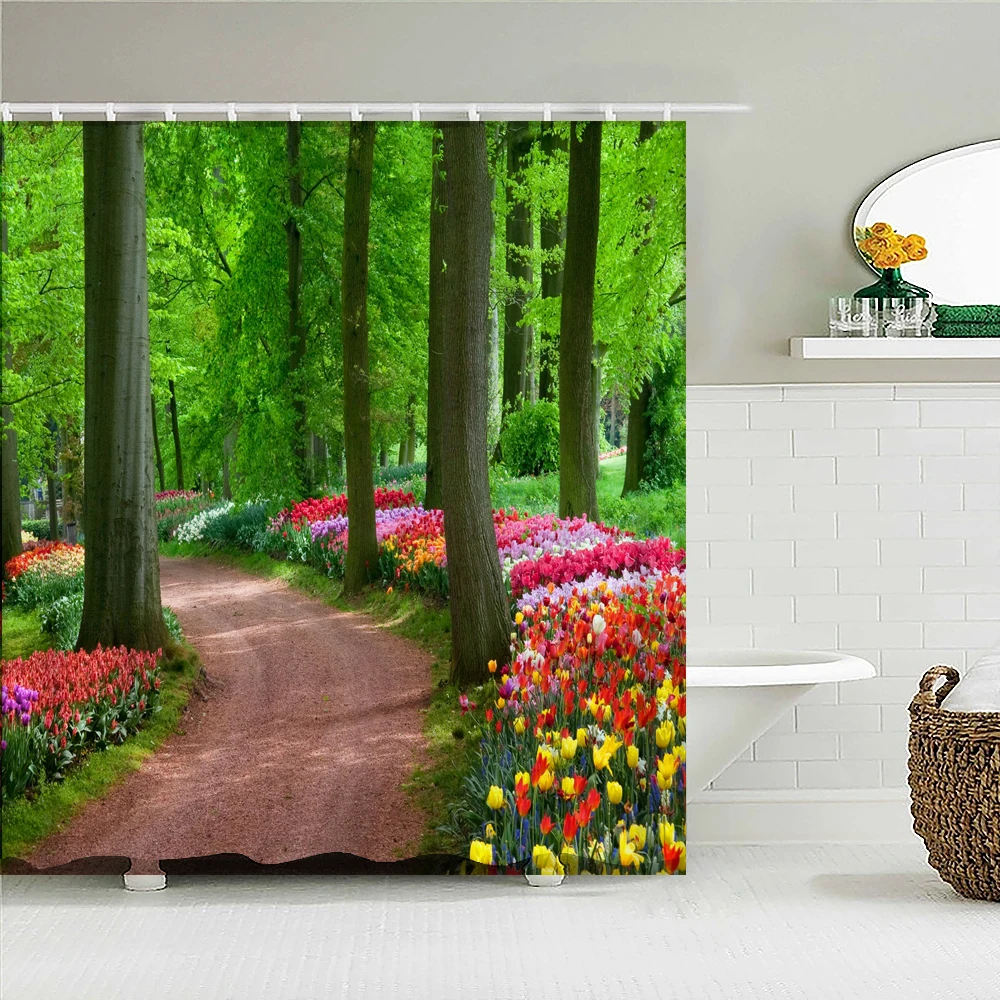 Занавеска для душа с 3d-изображением цветов, сада, пейзажа, бабочки...